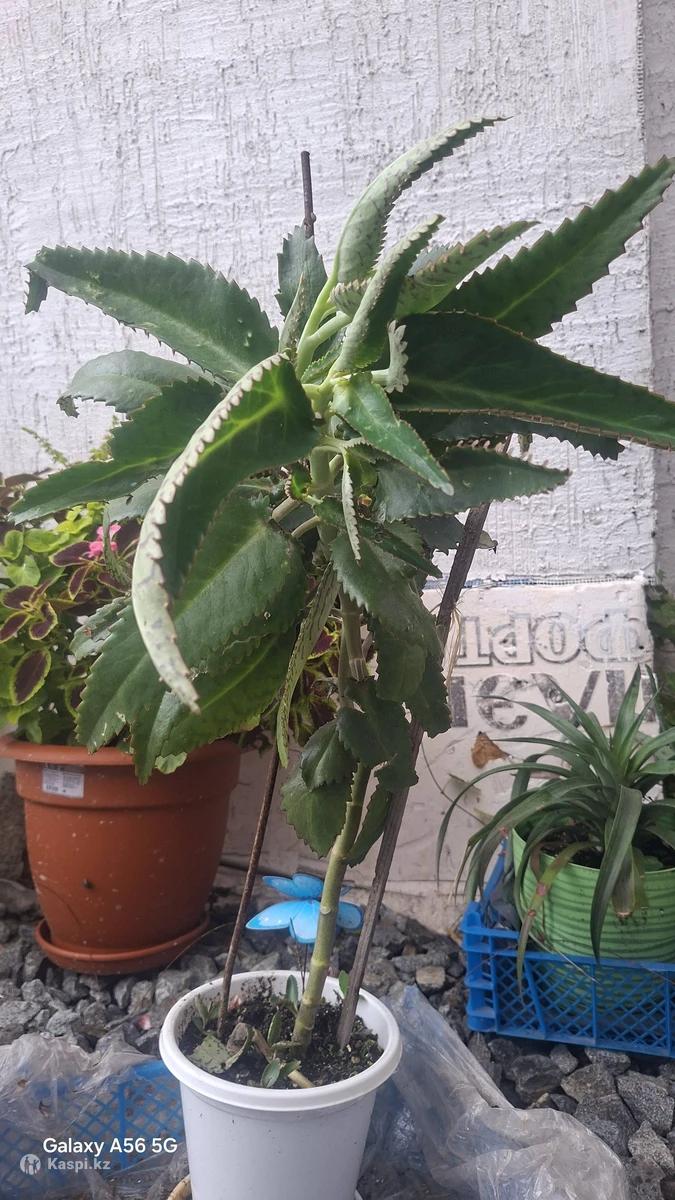Взрослое растение, высотой 80см. Отдам за 1 кг спелых бананов. Самовывоз, район Новой Согры Комнатное растение Каланхоэ Дегремона или Каланхоэ лечебный Травянистый суккулент семейства Толстянковые Сок каланхоэ оказывает ранозаживляющее, бактерицидное и противовоспалительное действие Сок каланхоэ успешно применяется для лечения трофических язв, экзем, фурункулов, пролежней, сыпи на коже, гнойных процессов, ожогов, эрозий, снятия головной и зубной боли, эффективен при остановке кровотечения. Как быстро вылечить насморк? Нужно вводить в нос по 3-5 капель сока каланхоэ несколько раз в день (обычно 2-4 раза). Применяют это растение для лечения авитаминоза и упадка сил, воспалительных процессов в желудочно-кишечном тракте, туберкулеза, гриппа, язвы желудка, блефарита, конъюктивита, ангины, тонзелита, варикозного расширения вен. Из листьев каланхоэ можно приготовить спиртовую настойку и мазь. Из многих видов каланхоэ ярко выраженными лечебными свойствами обладает только каланхоэ Дегремона.