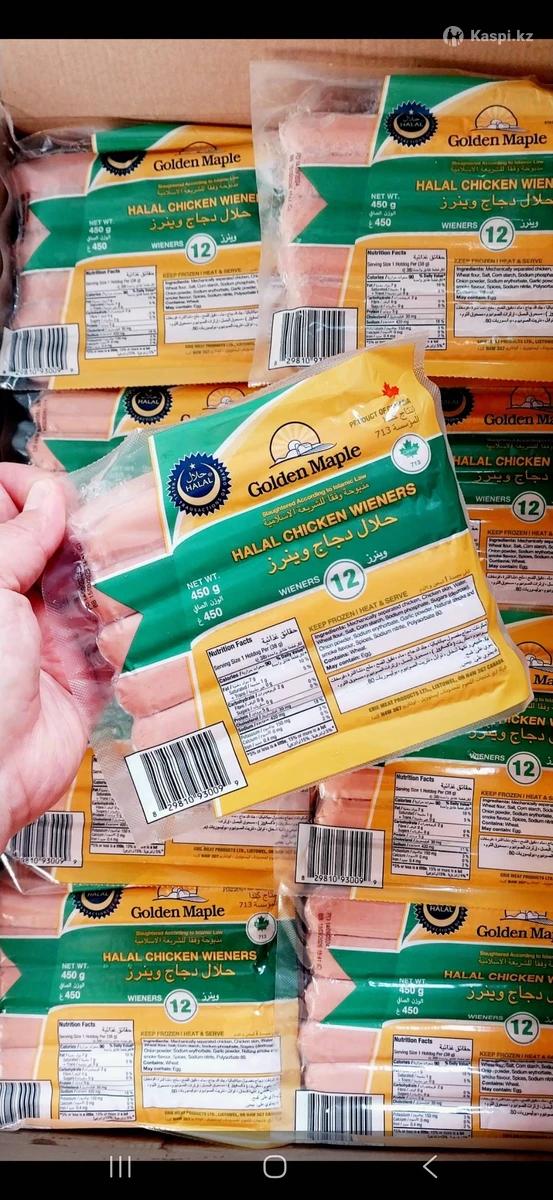 Замороженные куриные сосиски. Производство Golden Maple. Оптом и в Розницу. В вакуумной упаковке 450гр. Высокое качество, не развариваются, без плёнки. Товар сертифицирован. Доставка по городу Алматы от 1500тг.