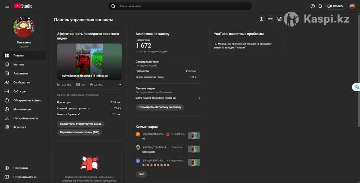 1672 жазылушысы бар YouTube канал сатылуда. Каналда страйктар, блоктар немесе басқа да нарушение жоқ. Продаётся YouTube-канал, имеющий 1672 подписчиков. Канал не имеет страйков, блокировок и других нарушений.