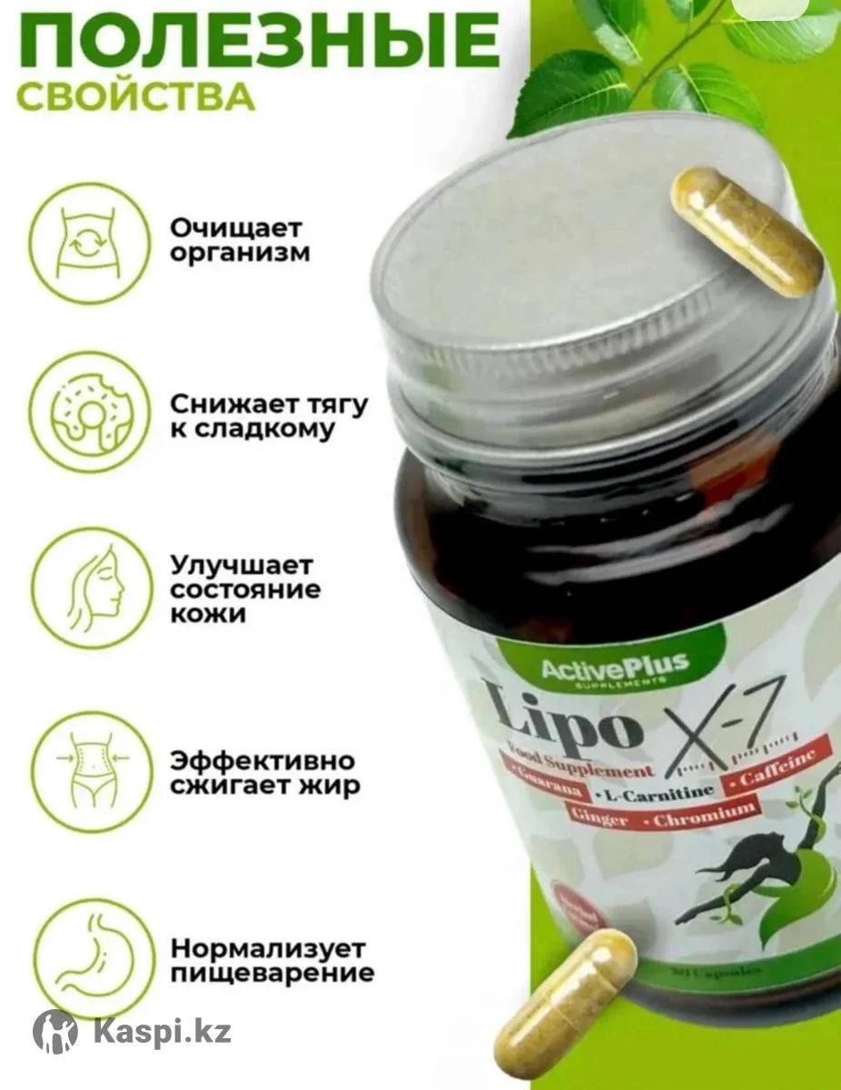 Цена 10000 тг Lipo-X7 это эффективный жиросжигатель для женщин и мужчин, разработанный с учетом последних научных достижений, который поможет быстро и безопасно избавиться от лишних килограммов. Средство для похудения, благодаря специально разработанной формуле, ускоряет обмен веществ, помогает организму избавиться от токсинов и запускает процесс активного снижения веса, способствует снижению аппетита. Натуральные и безопасные молекулы компонентов для похудения в составе способствуют расщеплению висцерального и подкожного жира. Уже через неделю приема ты заметишь первые результаты. Lipo-X7 это не просто еще один жиросжигатель на рынке, это таблетки для похудения, которые действительно работают. Твой организм начнет активно сжигать калории даже в состоянии покоя и ты почувствуешь прилив энергии и легкости. Не теряй времени на бесполезные попытки похудеть, доверься проверенному средству, которое помогло уже тысячам людей. Применение . 1 капсула перед завтраком за 30 минут до еды