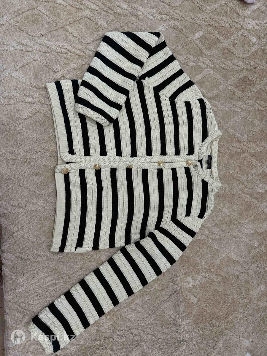 Теплый вязанный кардиган в полоску, размер 42-46