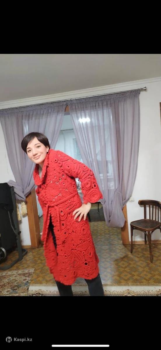 Кардиган ручной работы, Ирландское кружево, Красного цвета
