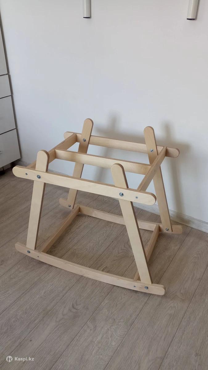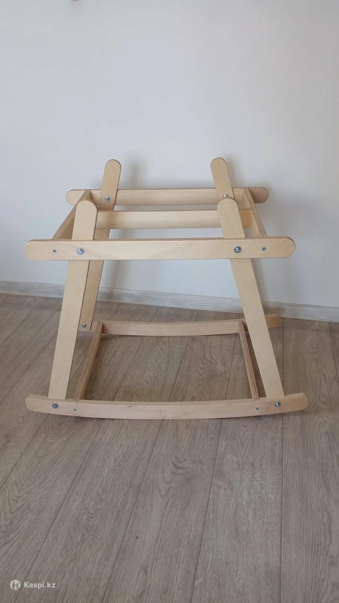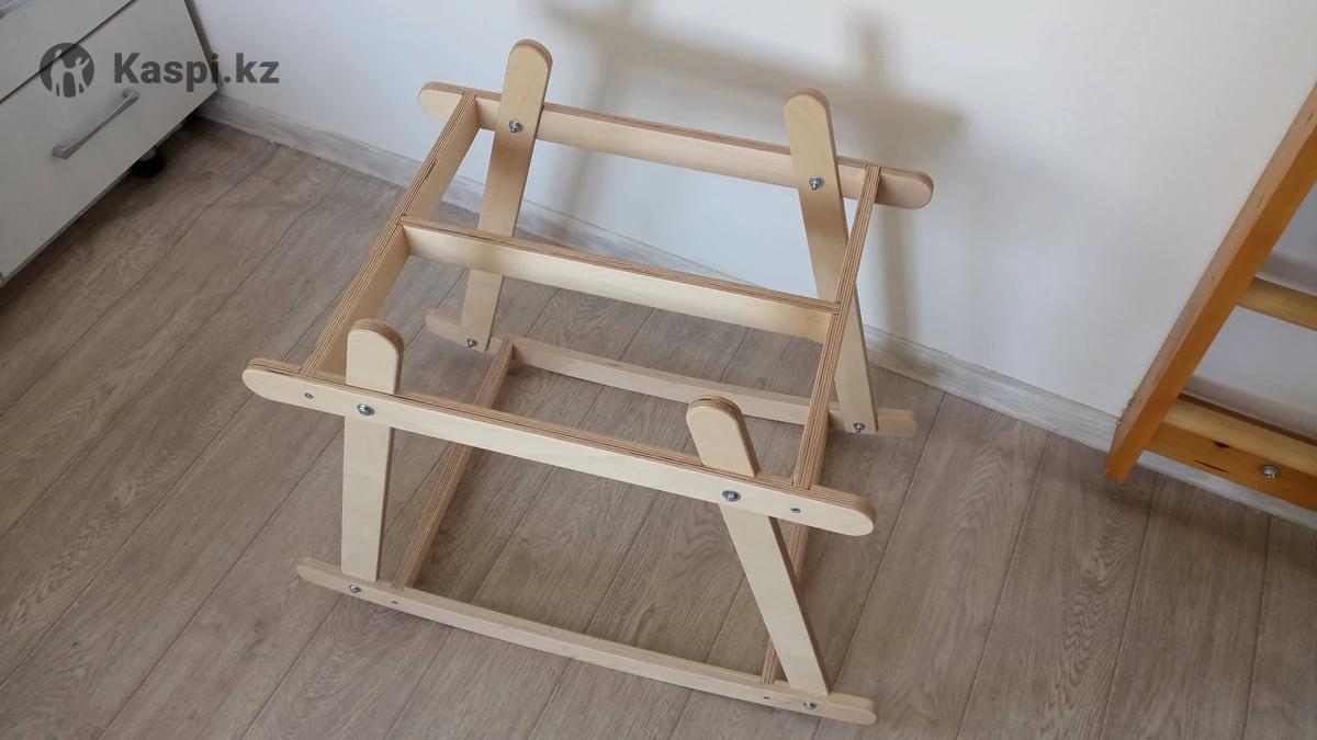 Каркас под вязанную люльку, материал березовая фанера производное дерева, покрытие акриловый лак, высота 55 см, качание голова-ноги, без ограничителей, для крепления люльки на каркасе использовать завязки.