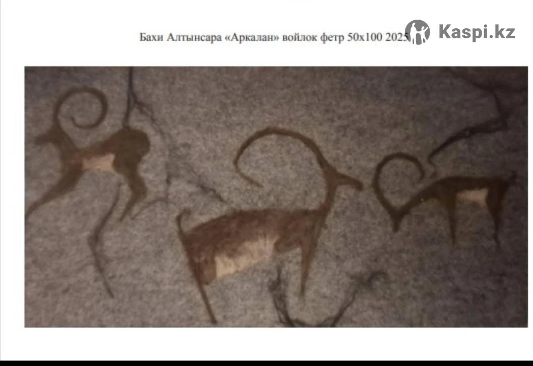 картина 50×100×2 войлок фетр выставляли в музей на выставку рама багетной мастерской в темно- золотистый цвет отлив красивый украсит интерьер из серии петроглифовы казахстана