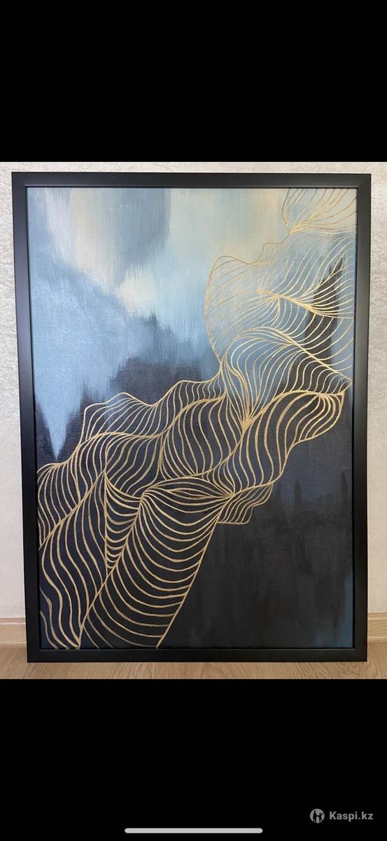 Картина написана акрилом. Называется “wild waves”. Размер: высота 110 ширина 80. Находится в абсолютно новом запакованном состоянии, уже имеет петельки для того, чтобы повесить на стену.