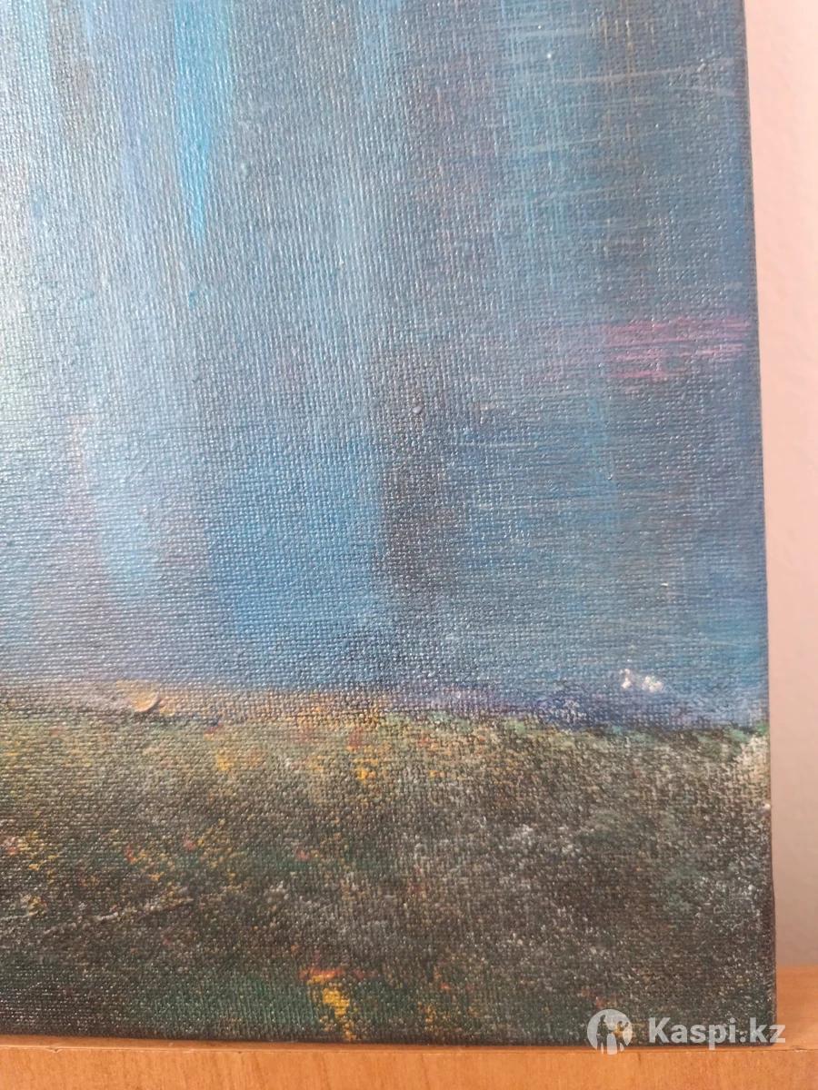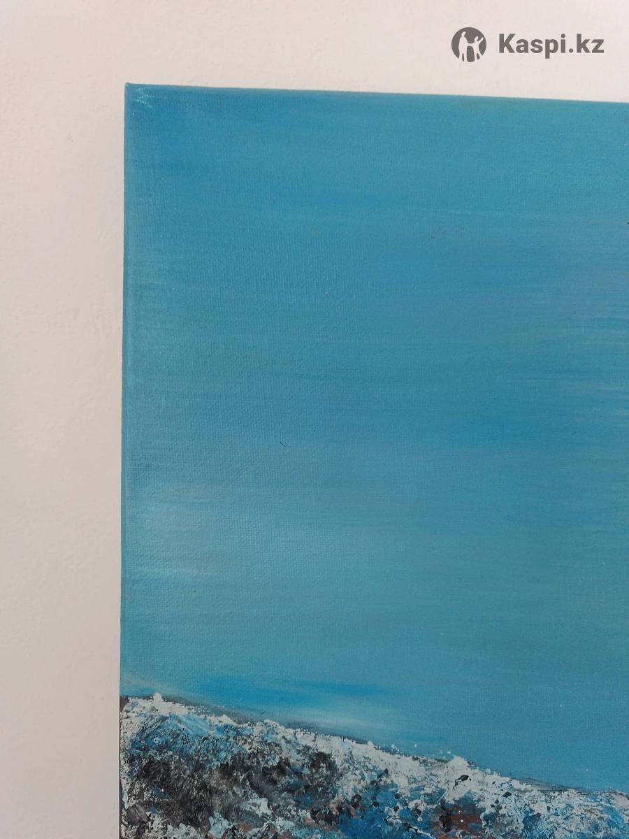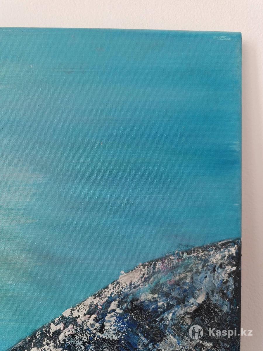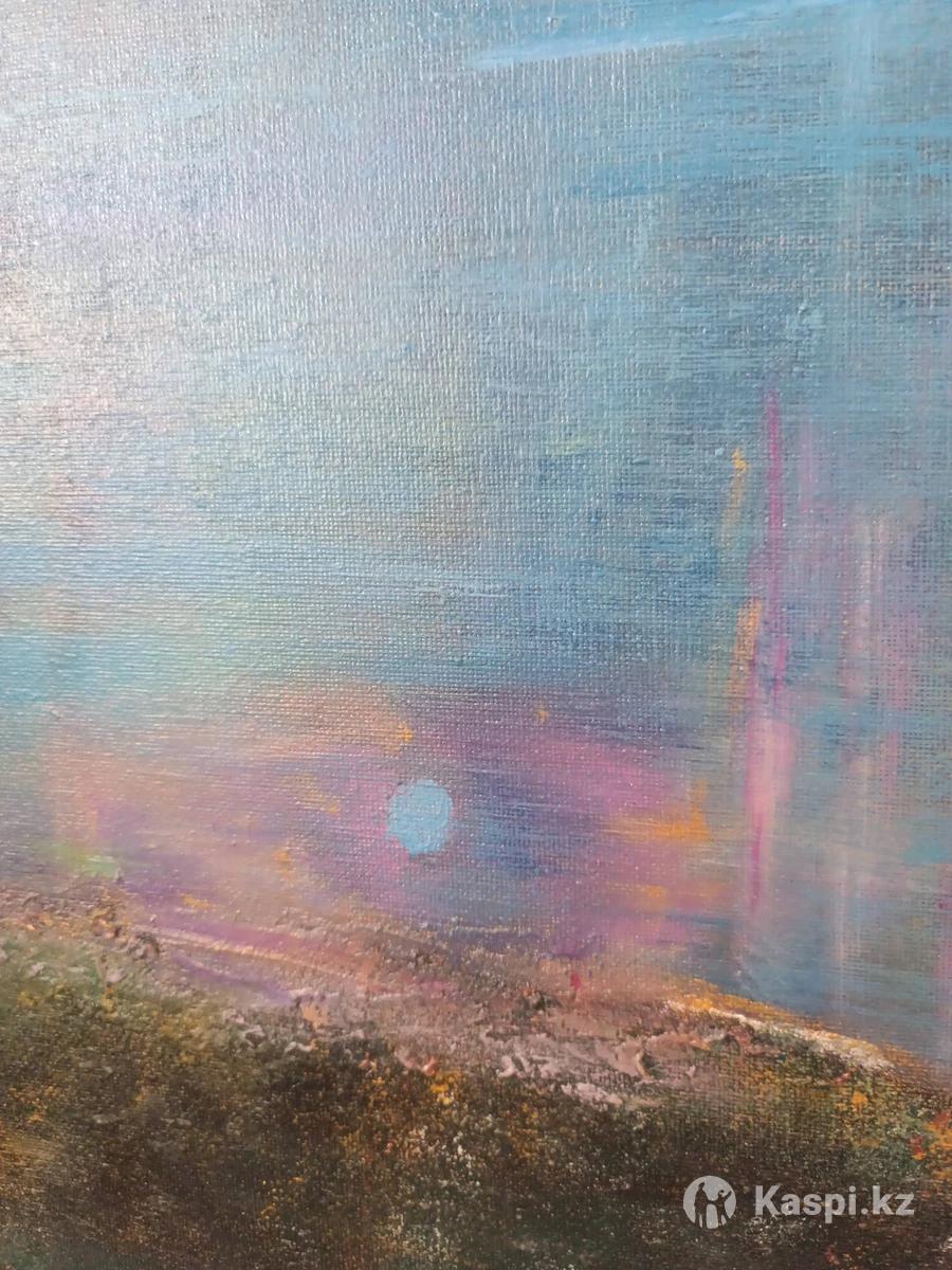 Акриловая картина покрыта лаком. Горное озеро. Высота 70. Ширина 50. Можно протирать. Качественная. Картина казахстанского писателя. Возможен торг. Картину хочется рассматривать. Для ценителей душевного искусства.