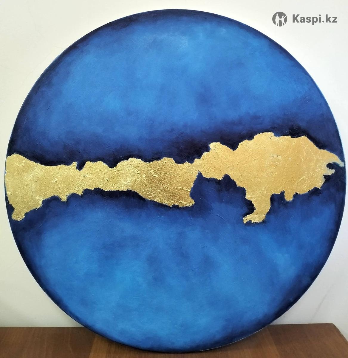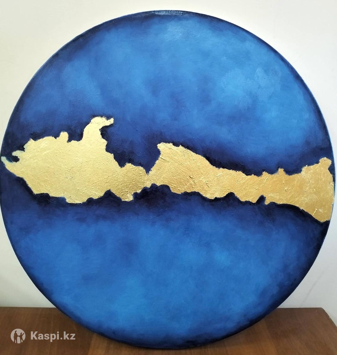 Картина "Абстракция мира" с использованием золотой потали и масляной краски диаметром 60 см
