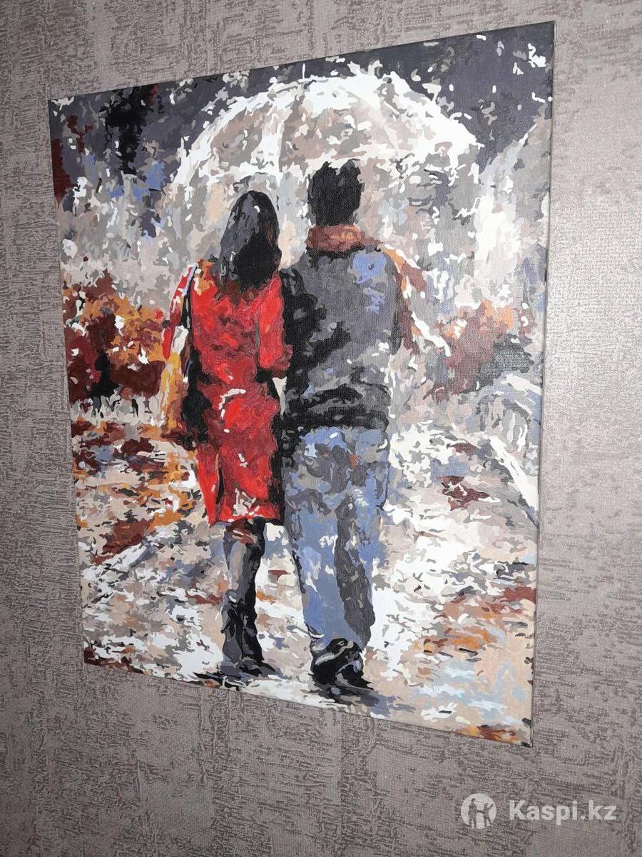 Готовая картина по номерам "Пара под зонтом", раскрашена акриловыми красками. Отдам за 500 тенге Размер 4050см Звоните или пишите в Адрес: Караганда, Бухар-Жырау 30