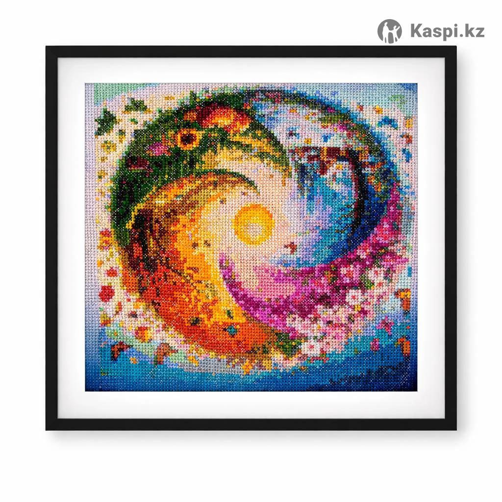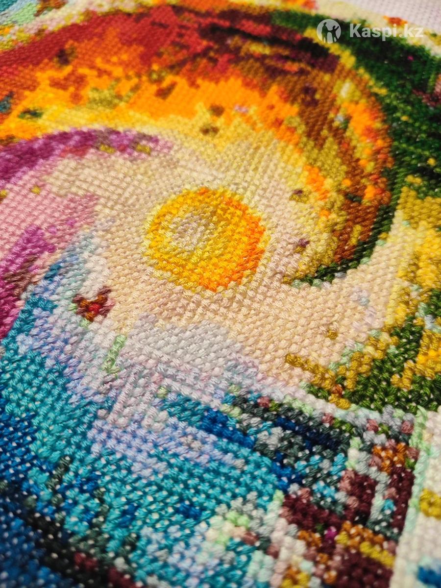 вручную. Авторская работа, аккуратная и качественная вышивка. 🔹 Размер вышитой области: 23 × 23 см 🔹 Техника: вышивка крестиком 🔹 Состояние: новая, не использовалась 🔹 Цена: 3000 тг Картина отлично подойдет: для уютного интерьера квартиры или дома в подарок близкому человеку для оформления рабочего пространства или творческого уголка Работа продается без рамки — это плюс, так как вы сможете подобрать оформление под свой интерьер и вкус.