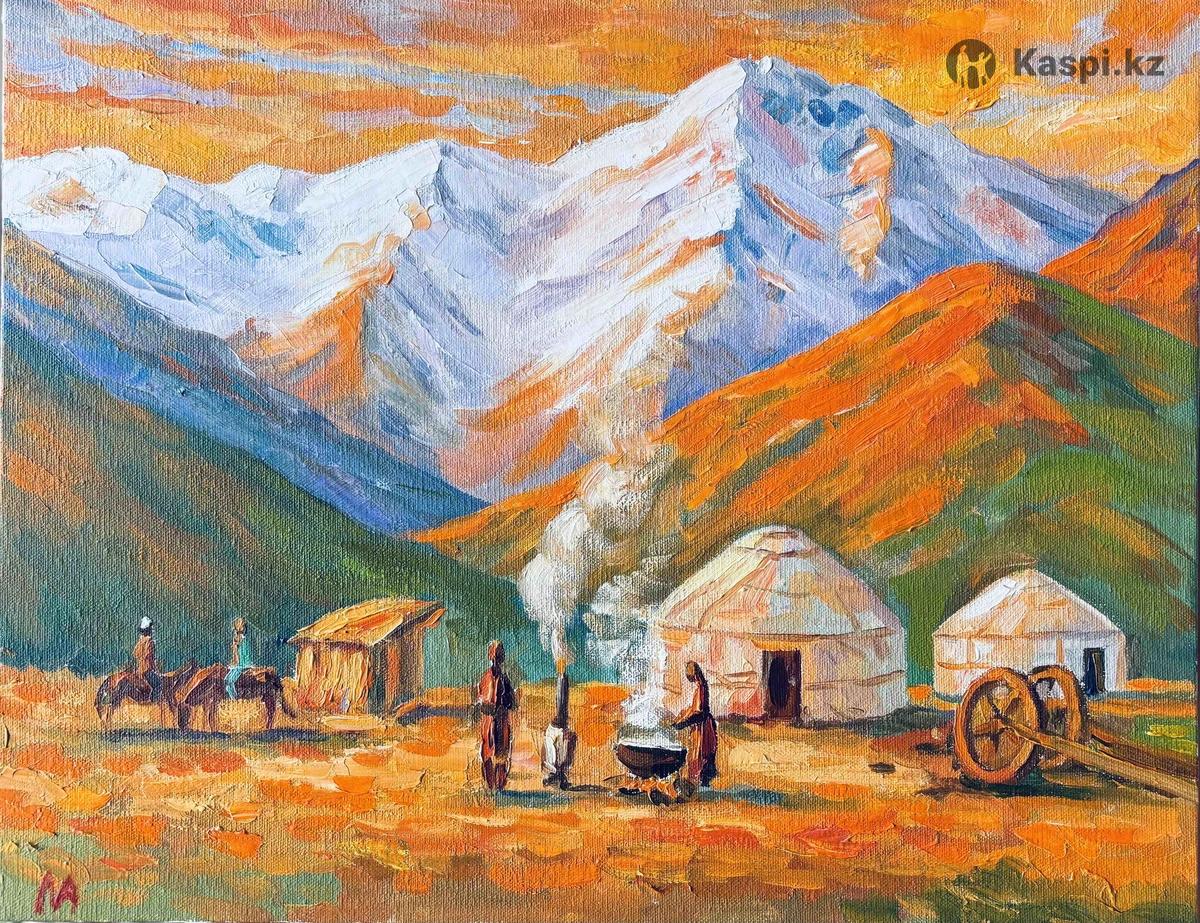 Продается авторская картина «Закат в джайлау». Размер: 46×36 см, техника: масло на холсте (без рамы). Работа выполнена профессиональным художником с художественным образова-нием. Теплые закатные тона передают красоту и спокойствие казахского джайлау - символа природы и свободы. + Уникальная авторская работа в единственном экземпляре. Идеально подойдет для подарка или украшения интерьера дома, офиса или кафе. Цена: 35 000 тг (возможен торг).