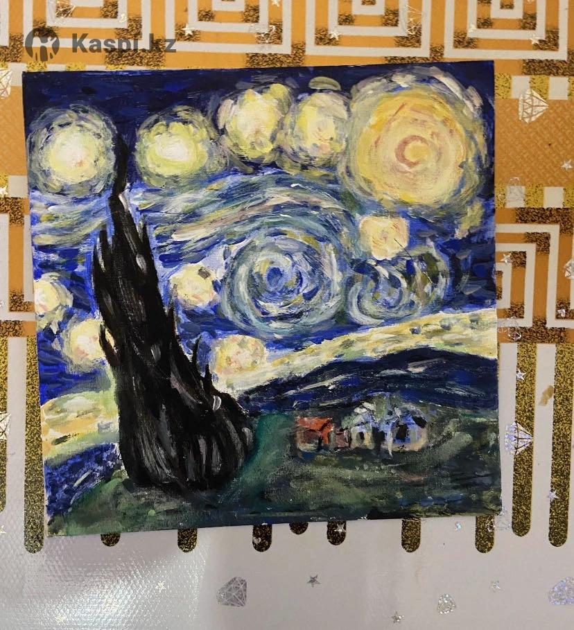 Картина,нарисованная мной,Звездная ночь Ван Гога, в более воздушном и менее мрачном стиле,размер 20/20