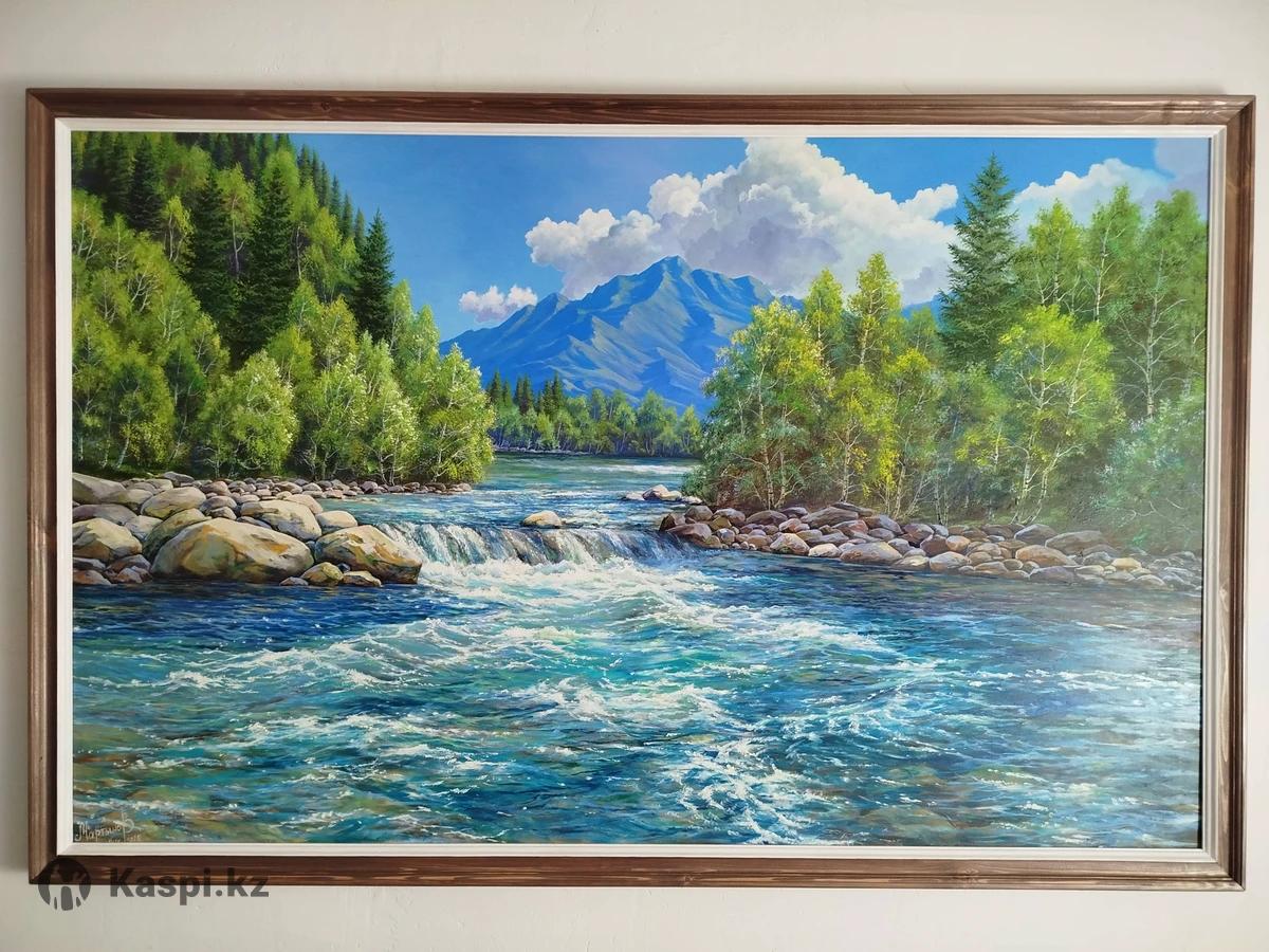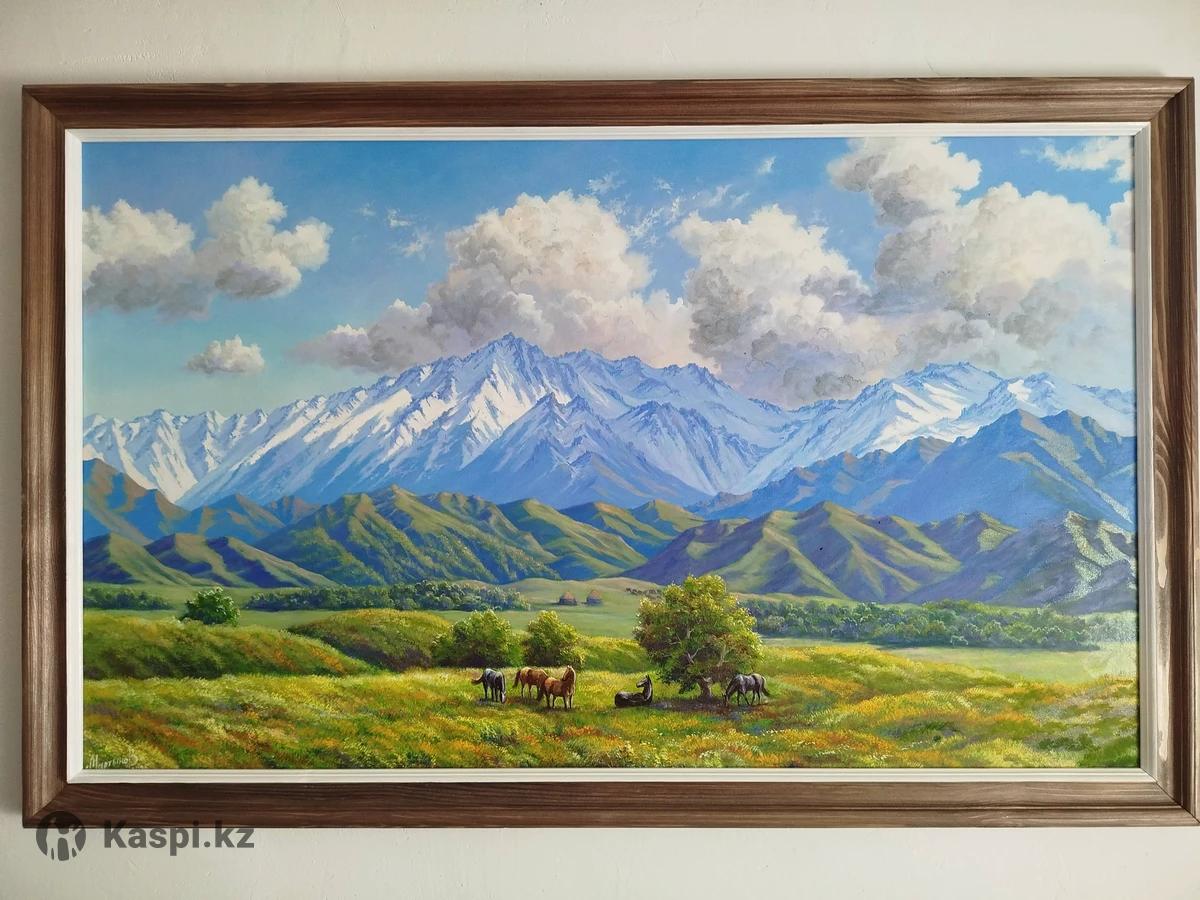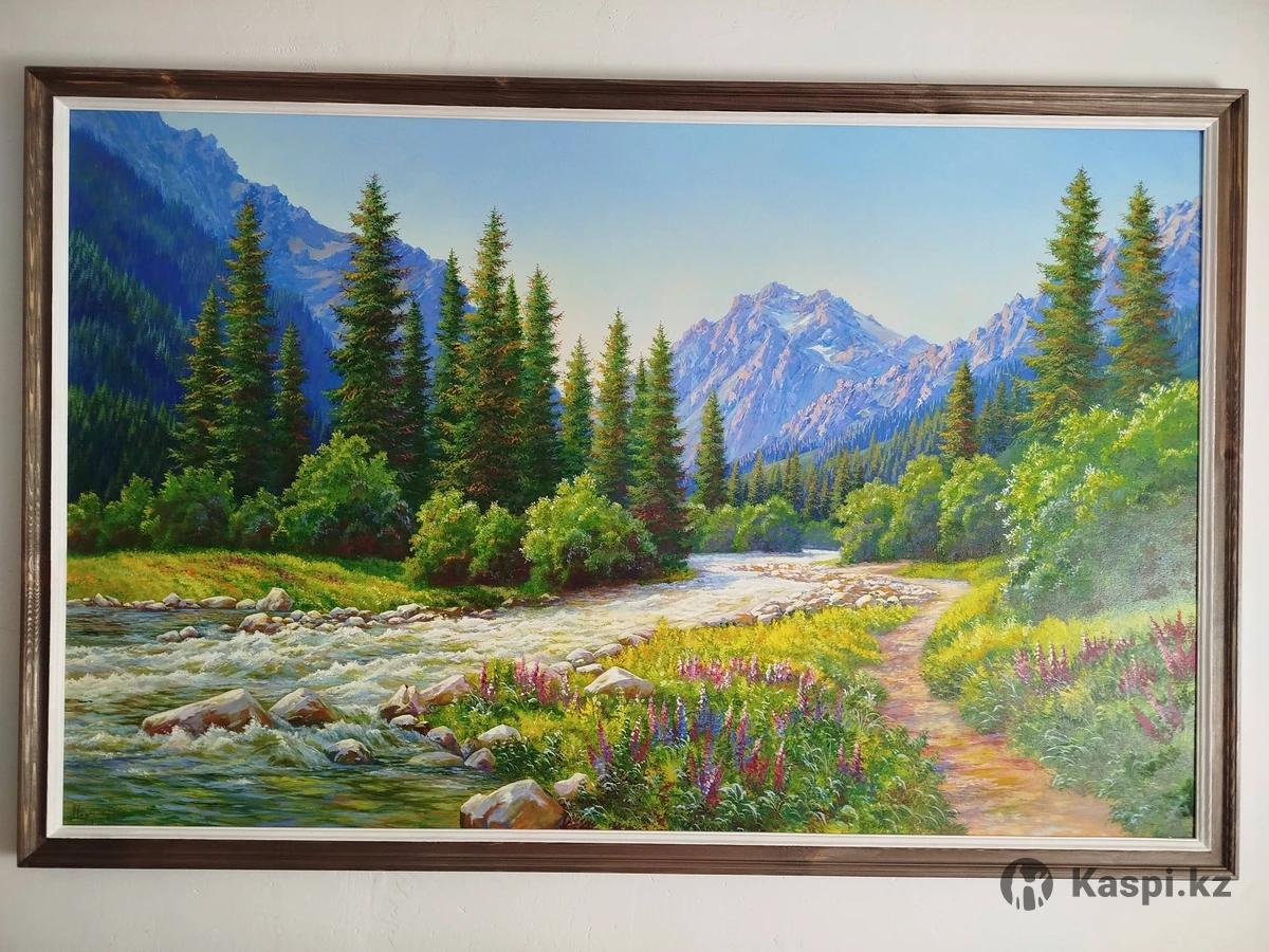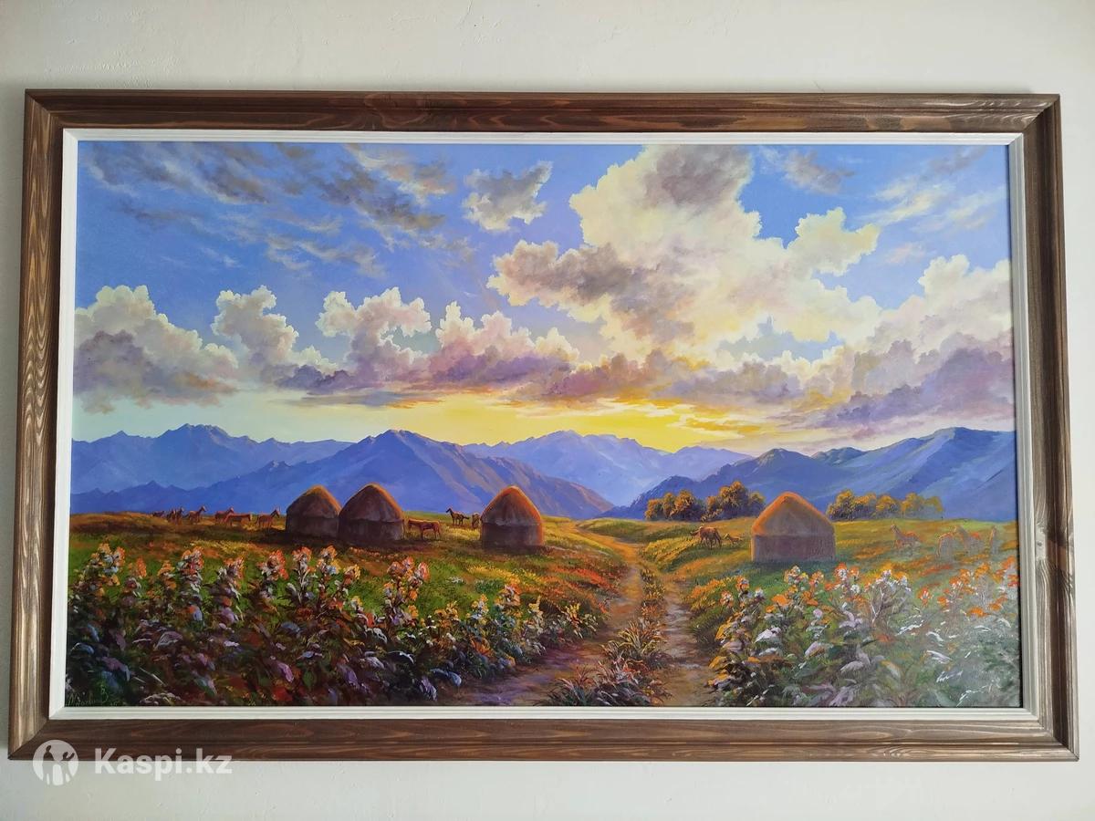 Картины холст,масло.Рамы из чистого дерева.Ручная работа.Размеры:100×60 цена 40.000т.,140×90 цена 65.000т.Можно на заказ.