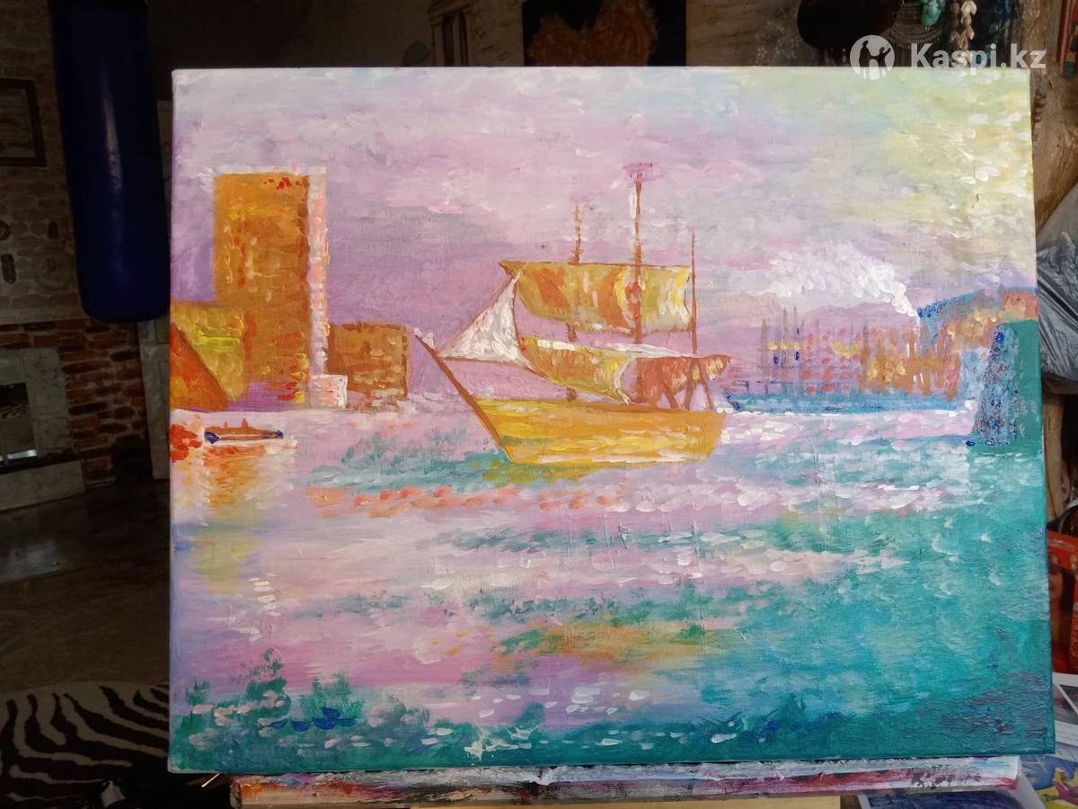 Картина на холсте Размер 40×50 (копия французский импрессионизм 19 век(порт Ля,Рошель