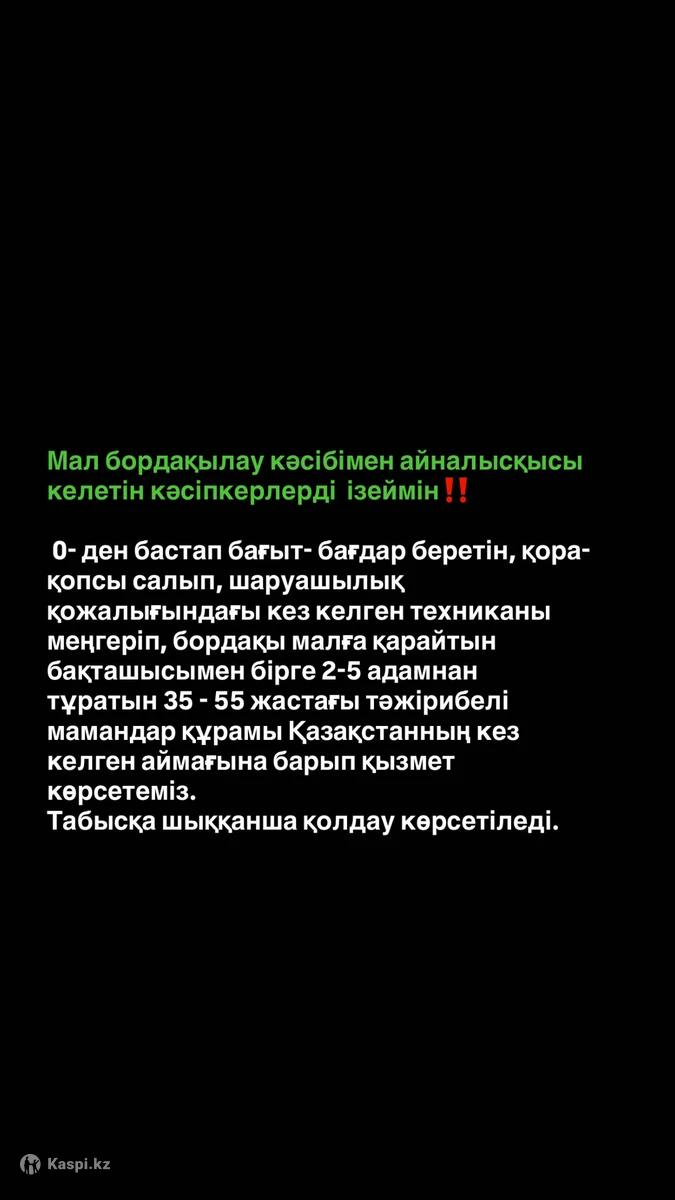 Мы предоставляем профессиональную поддержку предпринимателям, которые хотят начать животноводческий бизнес с нуля. Наша команда состоит из опытных специалистов 35–55 лет (2–5 человек), которые выезжают в любой регион Казахстана и помогают организовать работу хозяйства. Что мы делаем: •Строим и готовим все необходимые помещения: хлев, загоны, кормохранилища. •Обучаем и сопровождаем весь процесс откорма скота. •Осваиваем и показываем работу с любой техникой хозяйства. •Работаем вместе с вашим пастухом или предоставляем своего. •Поддерживаем до выхода бизнеса на стабильный доход. Мы помогаем не только начать, но и довести хозяйство до результата.