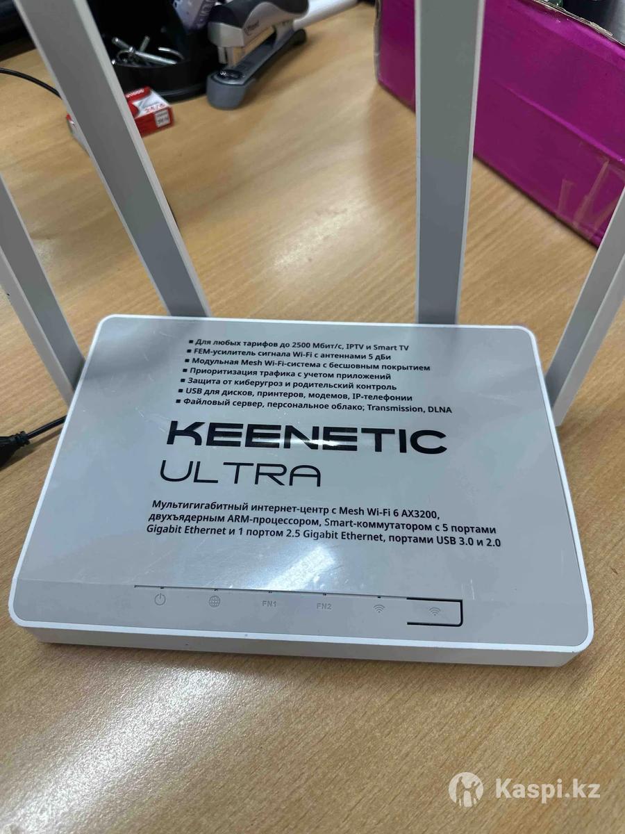 Продам роутер Keenetic Ultra (Mesh Wi-Fi 6, AX3200). •Поддержка Wi-Fi 6 (AX3200) •До 2.5 Gbit Ethernet •5 × Gigabit LAN •1 × 2.5G порт •USB 3.0 и USB 2.0 •Поддержка Mesh-системы •IPTV, Smart TV, VPN •Родительский контроль и защита сети Мощный двухъядерный ARM-процессор. Подходит для квартиры, дома или офиса с высокой нагрузкой. Состояние: б/у, полностью рабочий.