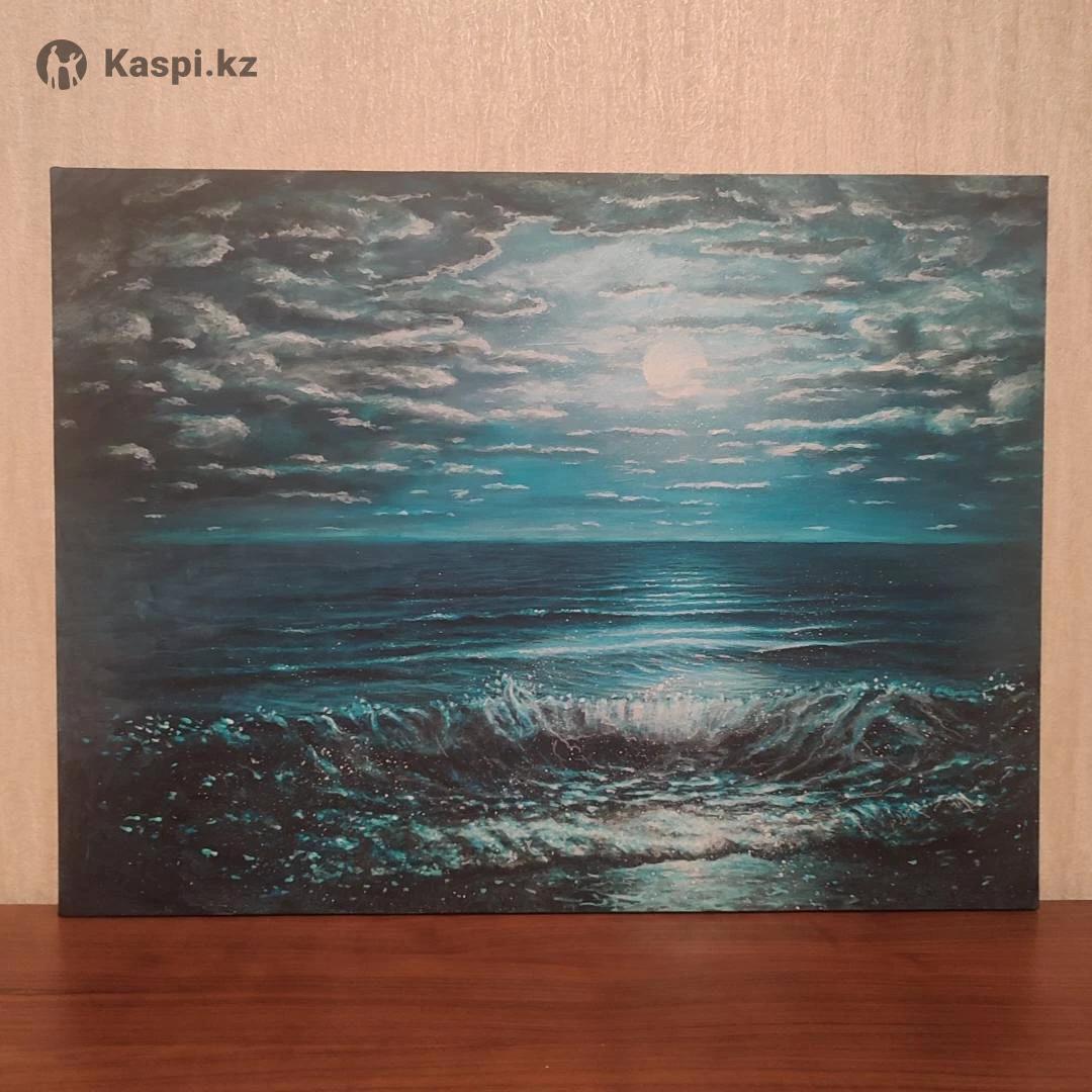 Картина "море, луна". Холст масло . Размер 80 на 60 см.