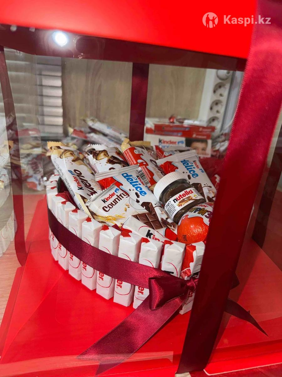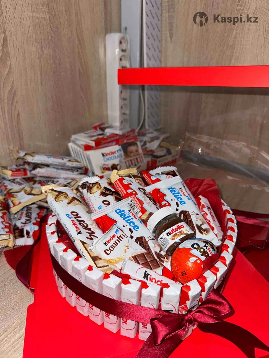 Бокс собран вручную с вниманием к каждой детали. Идеальная симметрия, стильный декор. Идеальный выбор для 14 февраля, дня рождения или просто, чтобы сказать: «Ты самая милая». Что внутри? ✨ Kinder Surprise; ✨ Kinder Delice; ✨ Kinder Country; ✨ Kinder Bueno (хрустящее наслаждение); ✨ Kinder Chocolate (тающая нежность); ✨ Маленькая баночка нутеллы; ✨ Декор (наполнитель, ленты, тематические вставки, упаковочная коробка и записка с вашими пожеланиями).