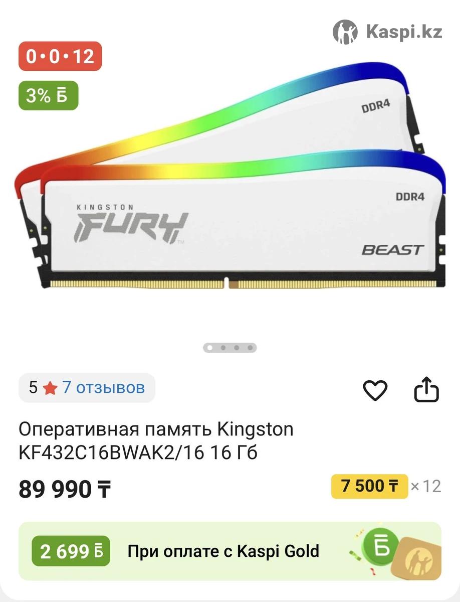 Kingston Fury Beast ARGB 2x8 Gb ddr4 3200 MHz. Как новый и на гарантии. Гарантия 10 лет.