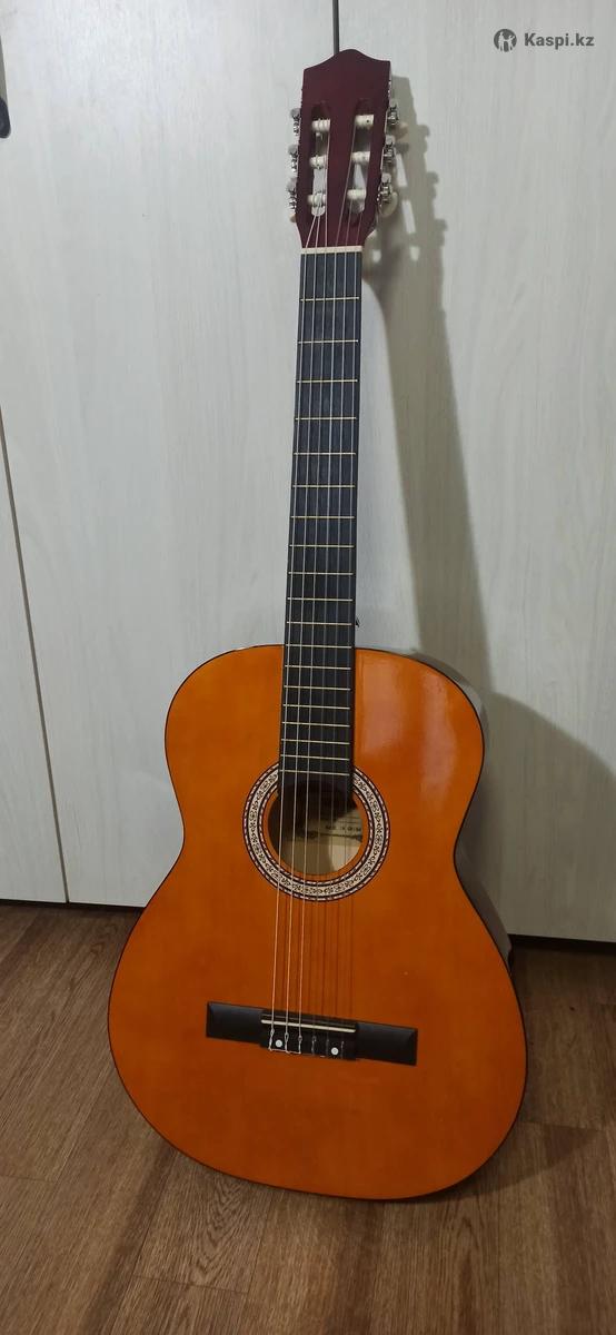 Продается классическая гитара с нейлоновыми струнами. Струны мягкие, легко зажимаются, поэтому инструмент отлично подойдет для начинающих. В комплекте есть все необходимое для старта: запасные струны, ремень, наклейки на гриф, напальчники и медиаторы. Пусть эта гитара станет первым вдохновением и небольшим шагом к большому миру музыки.