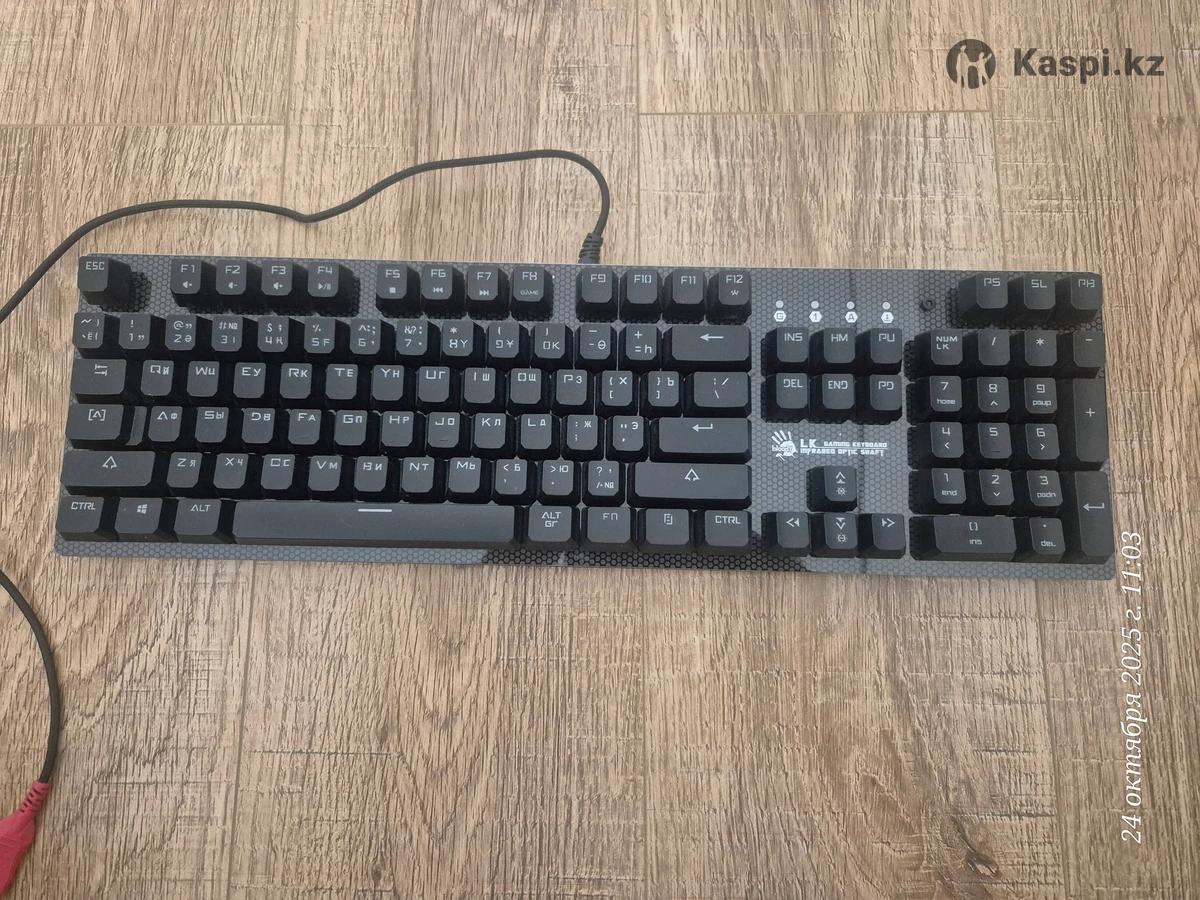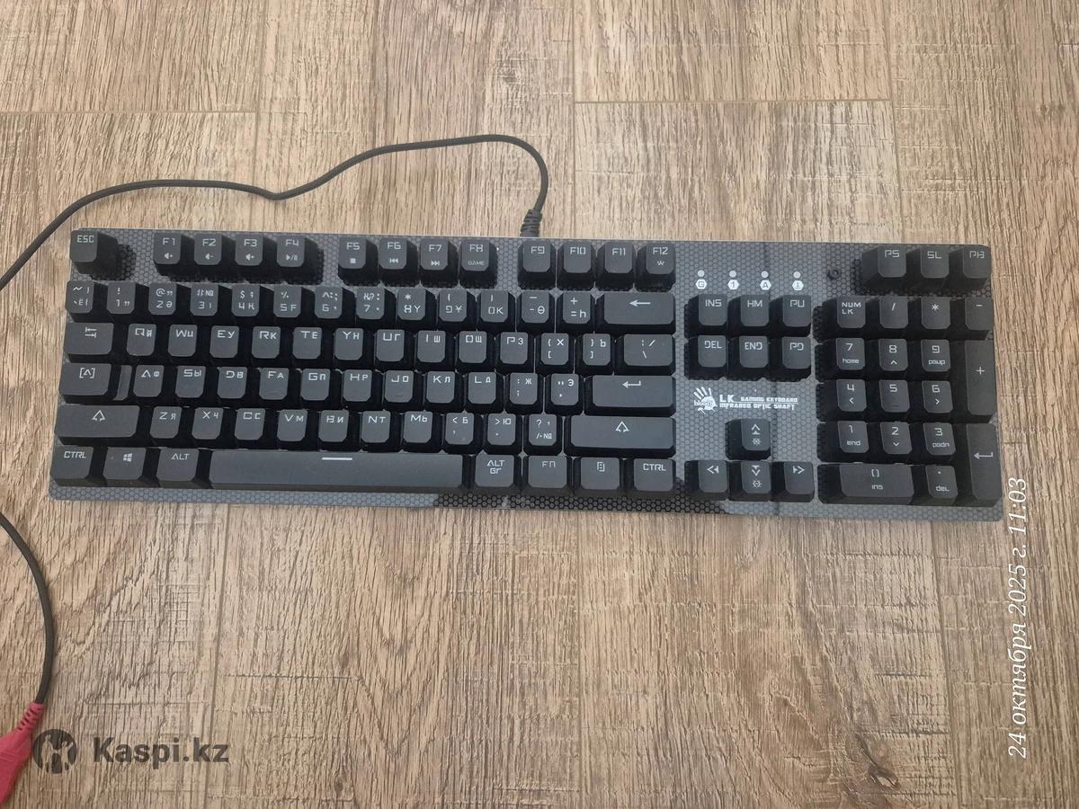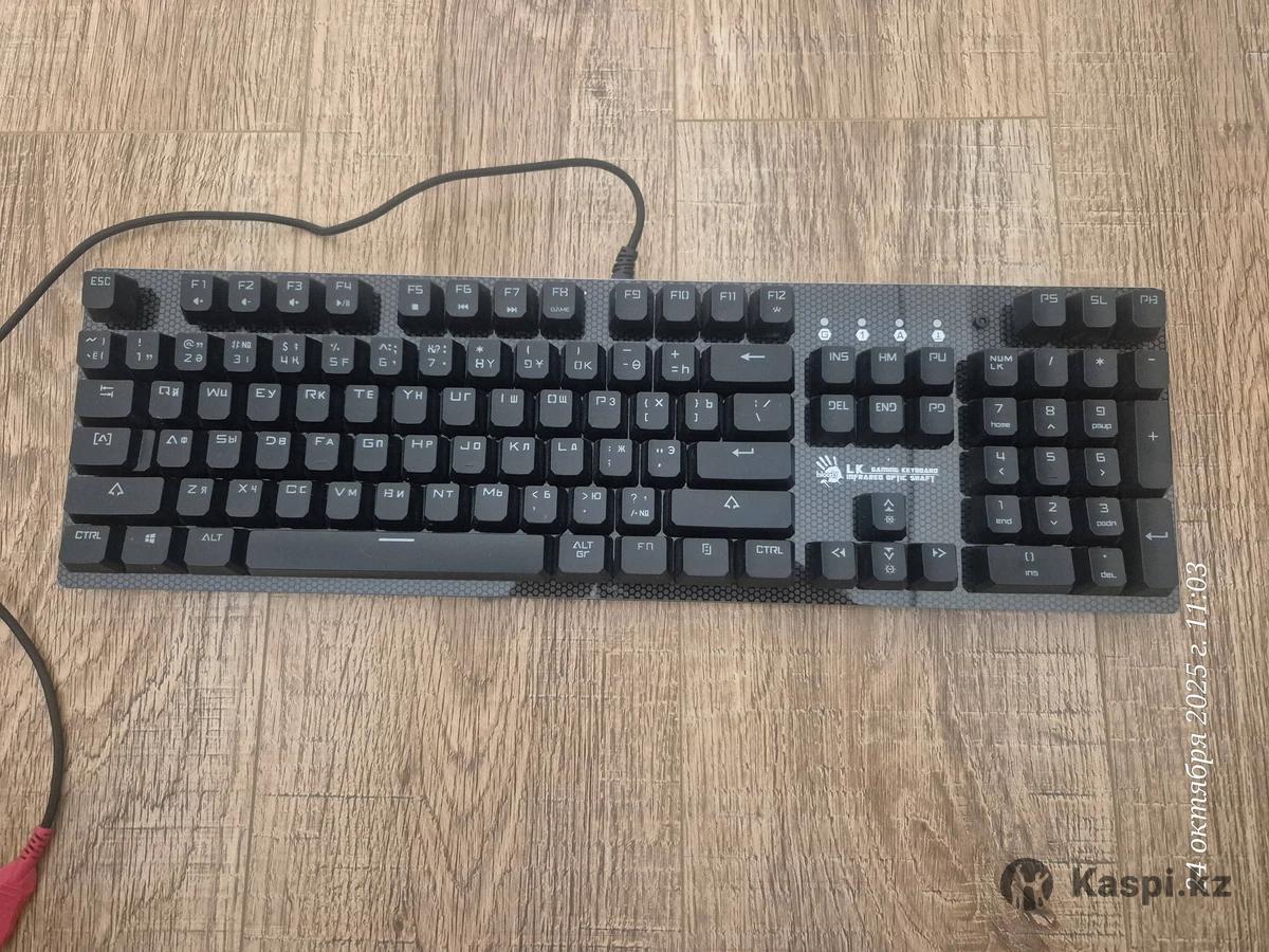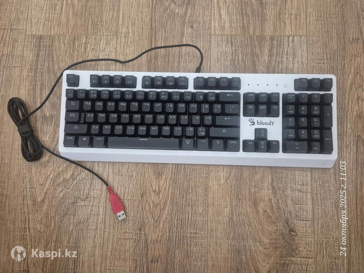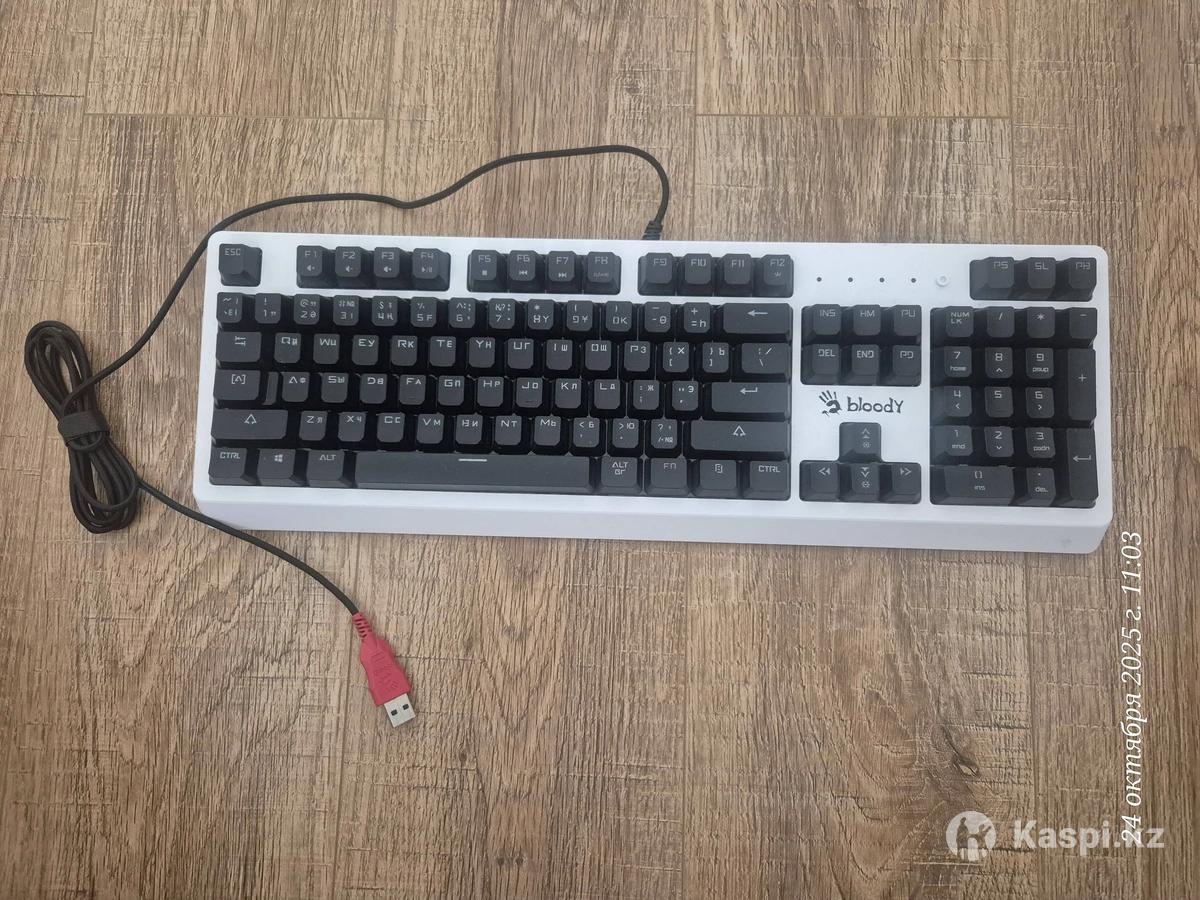Абсолютно новая клавиатура с документами, гарантией, чеками, коробкой. Покупал в мечте. Продаю в связи с тем что из за работы продал компьютер. И клавиатура стала не нужна. Взял мак бук. Bloody B810RC — это полноразмерная игровая клавиатура с оптомеханическими переключателями, RGB-подсветкой и съемной верхней панелью. Она предназначена для геймеров, которые ценят высокую скорость отклика и долговечность. Ключевые особенности Оптомеханические переключатели Light Strike Blue: Молниеносный отклик: срабатывают за 0,2 мс. Быстрое нажатие: ход срабатывания всего 3 мм, что на 25% быстрее традиционных механических переключателей. Тактильная и звуковая отдача: обеспечивают приятный "кликающий" звук при нажатии. Долговечность: ресурс до 100 миллионов нажатий. Дизайн: Съемная верхняя панель: крепится на магнитах и позволяет легко менять внешний вид клавиатуры, а также упрощает чистку (в режиме "скелетон"). Прочная конструкция: высокое качество сборки с ровными зазорами, корпус из пластика. Подсветка: RGB-подсветка: предлагает 6 предустановленных эффектов и до 16,8 миллионов настраиваемых цветов через фирменное ПО KeyDominator 2. Индивидуальная настройка: позволяет назначать собственный цвет для каждой клавиши. Защита: Влагозащитное нанопокрытие: предотвращает коррозию печатной платы при попадании влаги. Система дренажных каналов: помогает быстро отвести пролитую жидкость. Дополнительные функции: N-Key Rollover: позволяет регистрировать любое количество одновременно нажатых клавиш. Программируемое ПО: с помощью KeyDominator 2 можно создавать макросы и переназначать клавиши.