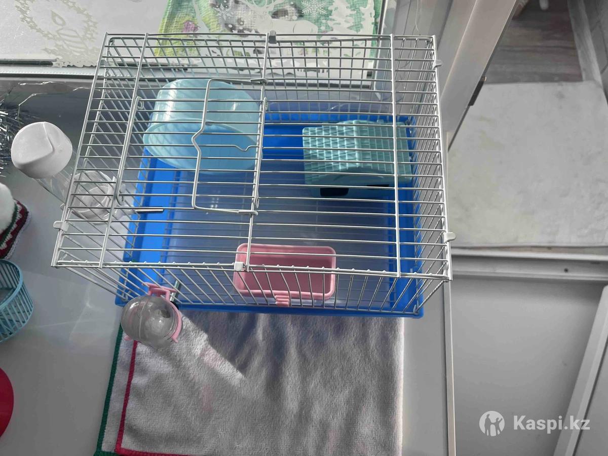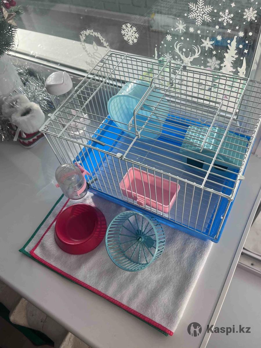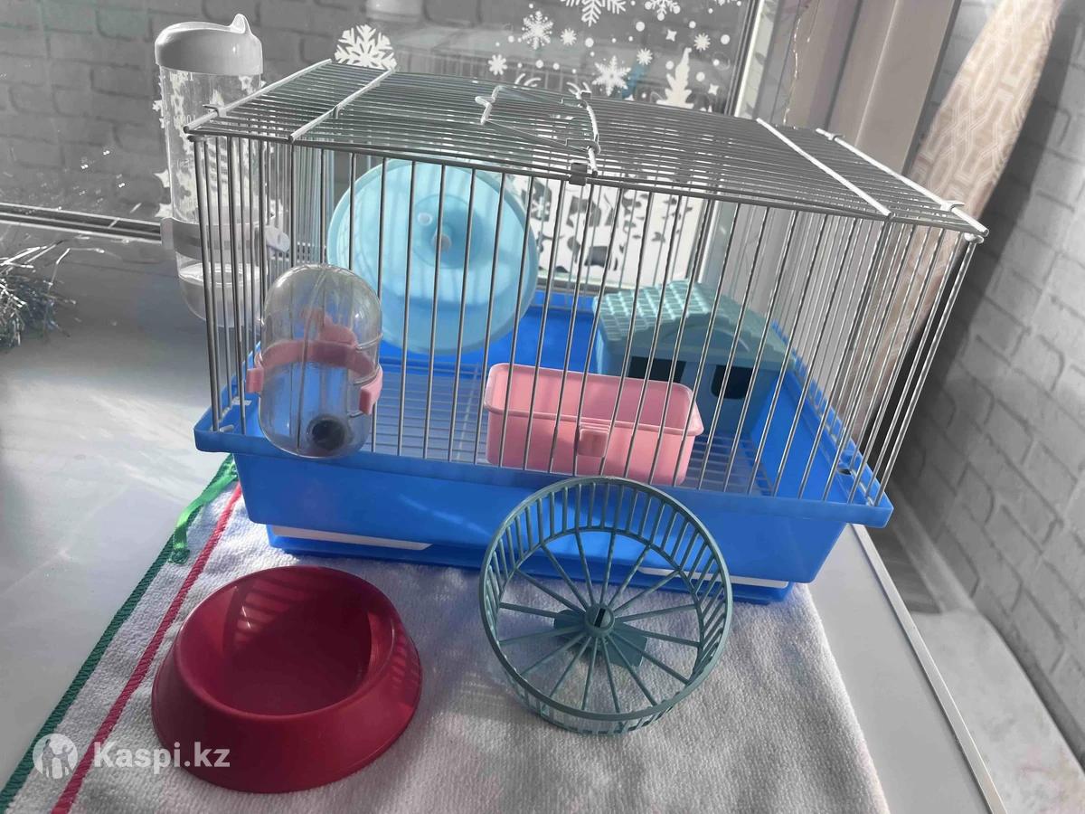 Новая клетка с домиком, поилкой, колесом и миской