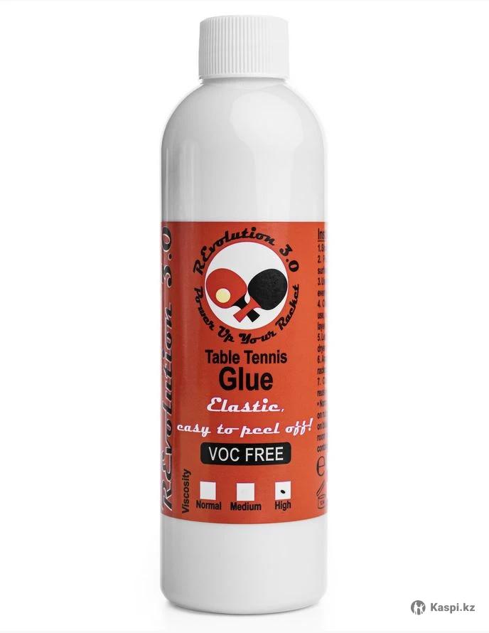 "Revolution Nr.3, Glue High Viscosity" (Клей высокой вязкости) — это лучшая разработка водного клея для настольного тенниса. Он легко наносится и быстро сохнет. Легко снимается, когда надо снимать — в отличие от многих других водных клеев, снятие которых проблематично и портит губку. На сегодняшний день это самый удобный в использовании водный клей из всех представленных на рынке. Также он на 100% проходит все тесты ITTF, что важно для тех теннисистов, кто играет на международных соревнованиях. Расход клея при использовании около 2 мл на 1 накладку. Стоимость: 8000 тенге за 100 мл.