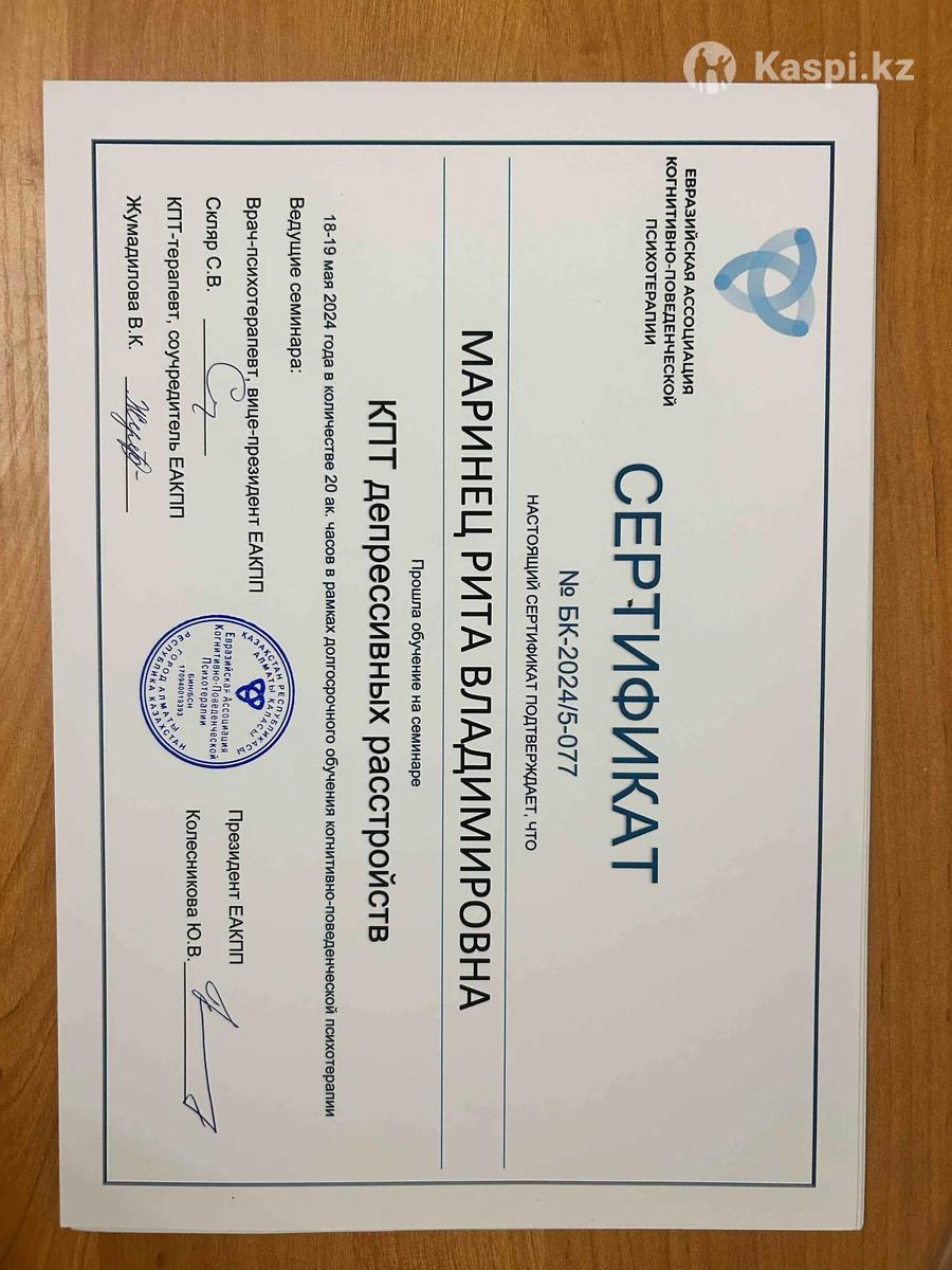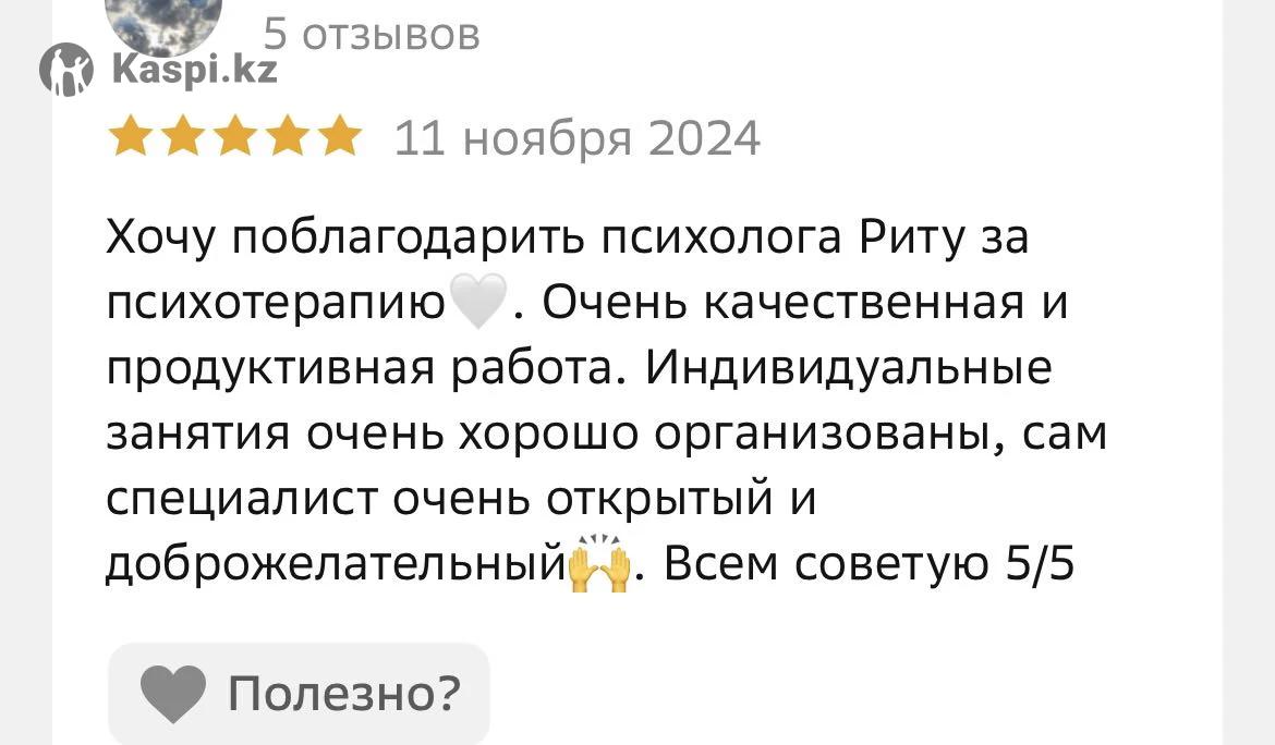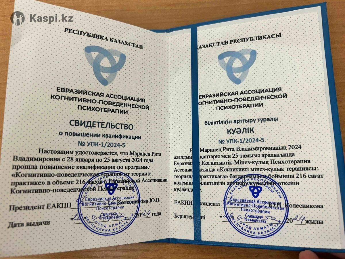 Ты устал(а) от тревоги, зависимостей, апатии или конфликтов в отношениях? Я помогу навести порядок в мыслях и вернуть ощущение контроля. Я - клинический психолог, работаю в когнитивно-поведенческом направлении (КПТ). Это современный и научно доказанный метод, который помогает: •снизить тревогу и стресс, •справиться с апатией, прокрастинацией, выгоранием, •наладить отношения и уверенность в себе, •преодолеть зависимость (курение, переедание и др.). 📌 У меня более 100 часов практики, магистратура по психологии и повышение квалификации в КПТ. 📌 Работаю как онлайн, так и очно. 📌 Первая консультация по специальной цене - 7.000 тг.