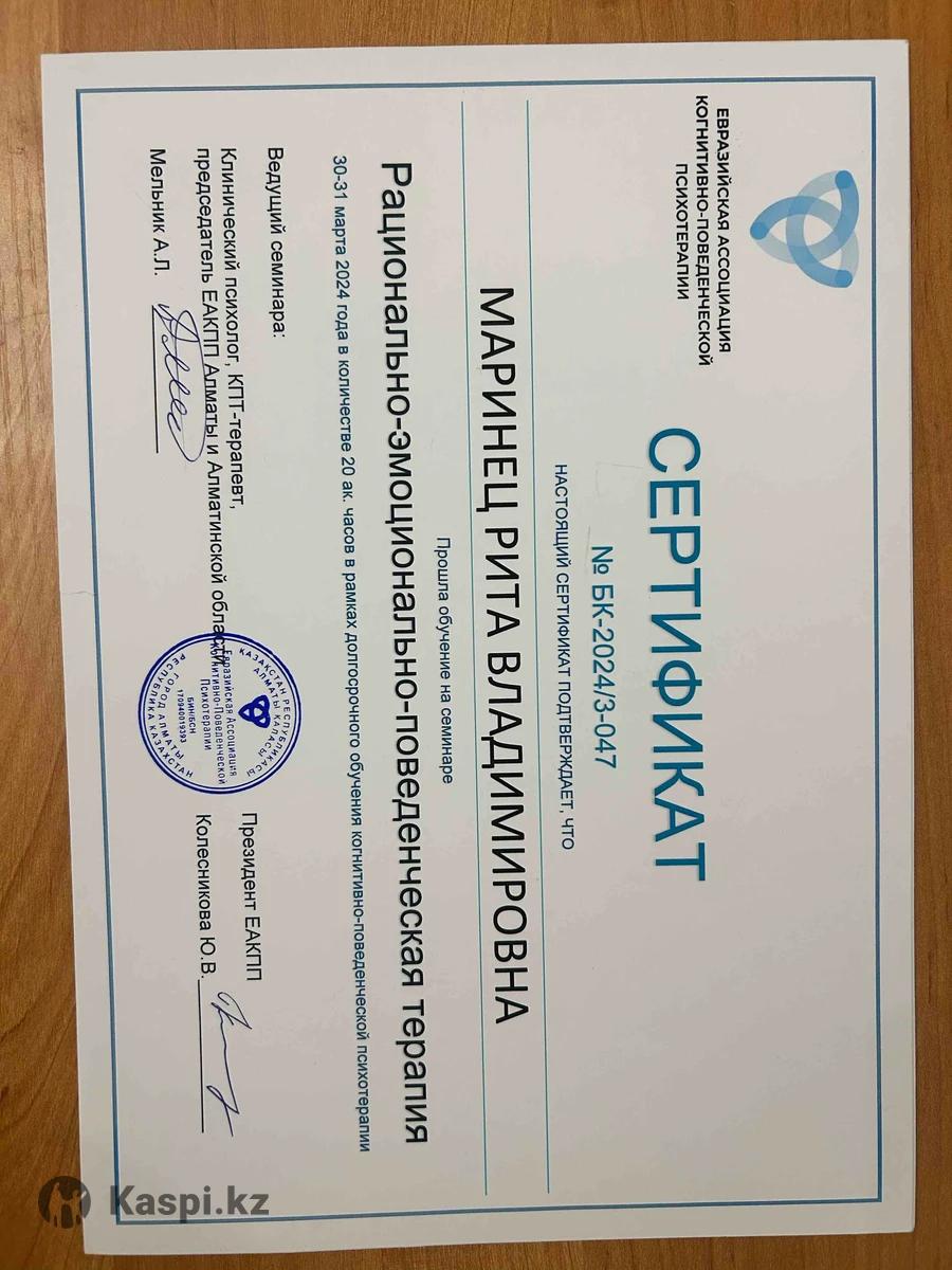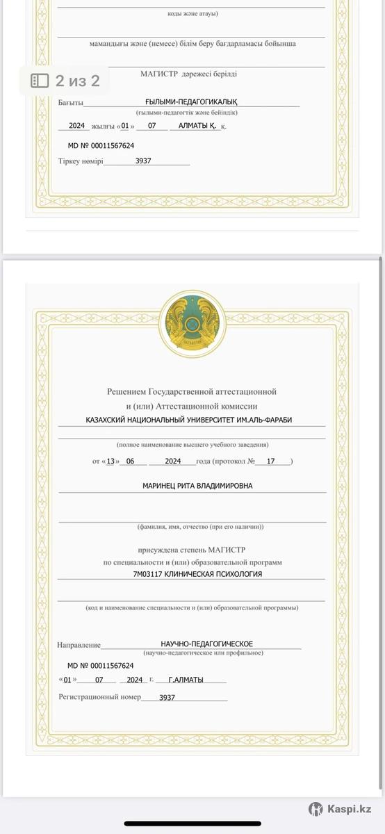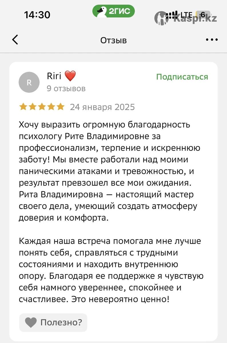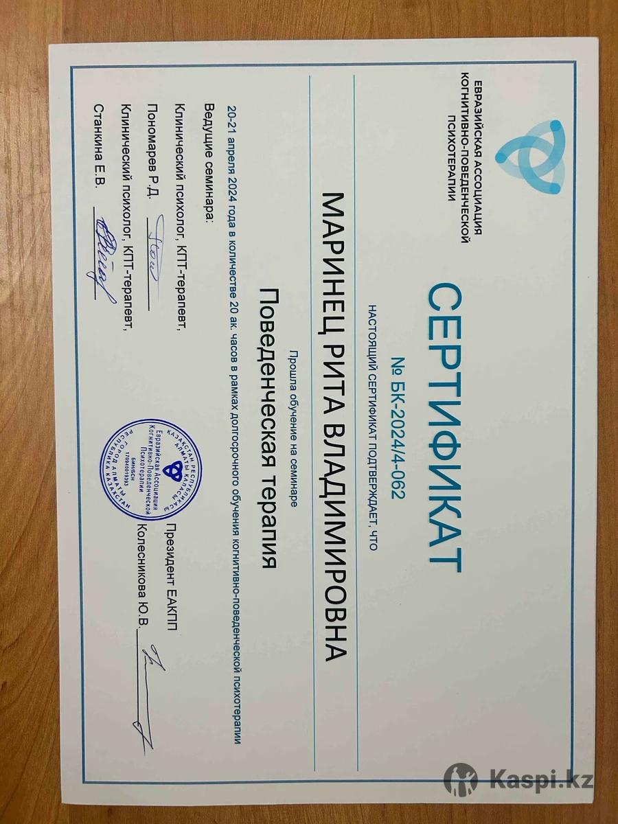 Ты устал(а) от тревоги, зависимостей, апатии или конфликтов в отношениях? Я помогу навести порядок в мыслях и вернуть ощущение контроля. Я - клинический психолог, работаю в когнитивно-поведенческом направлении (КПТ). Это современный и научно доказанный метод, который помогает: •снизить тревогу и стресс, •справиться с апатией, прокрастинацией, выгоранием, •наладить отношения и уверенность в себе, •преодолеть зависимость (курение, переедание и др.). 📌 У меня более 100 часов практики, магистратура по психологии и повышение квалификации в КПТ. 📌 Работаю как онлайн, так и очно. 📌 Первая консультация по специальной цене - 7.000 тг.