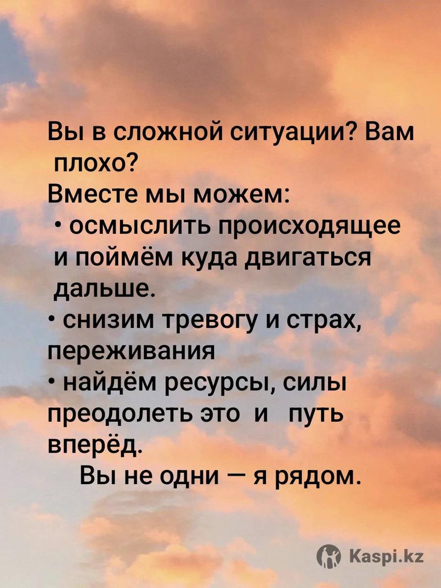 Mой оcновнoй профиль - эмoциoнaльнo завиcимыe отношeния, ceмейнoe кoнcультированиe и пpоблемы эмоциoнaльнoго спeктра (тpeвоги, cтpaxи, гнeв, апaтия, навязчивые мысли и т. п.) и личностного характера, такие как неприятие себя, чувства стыда и вины, неопределенность в жизни и отношениях. Так же я работаю: Работа с жертвами насилия. Работа с синдромом эмоционального выгорания. Депрессия. Зависимости. Сексуальные взаимоотношения. Детско-родительские отношения. Проблемы в отношениях. При обращении Вы можете рассчитывать на эмоциональную и профессиональную поддержку в трудные времена. Я помогу посмотреть на проблему с разных сторон и найти пути решения, поддерживая Вас на пути к самопониманию и обретению внутренней уверенности.