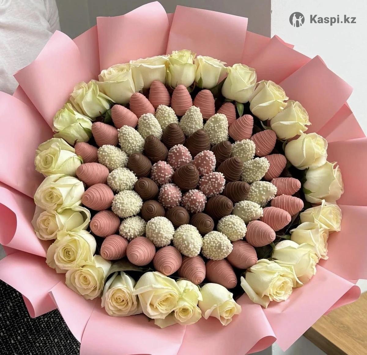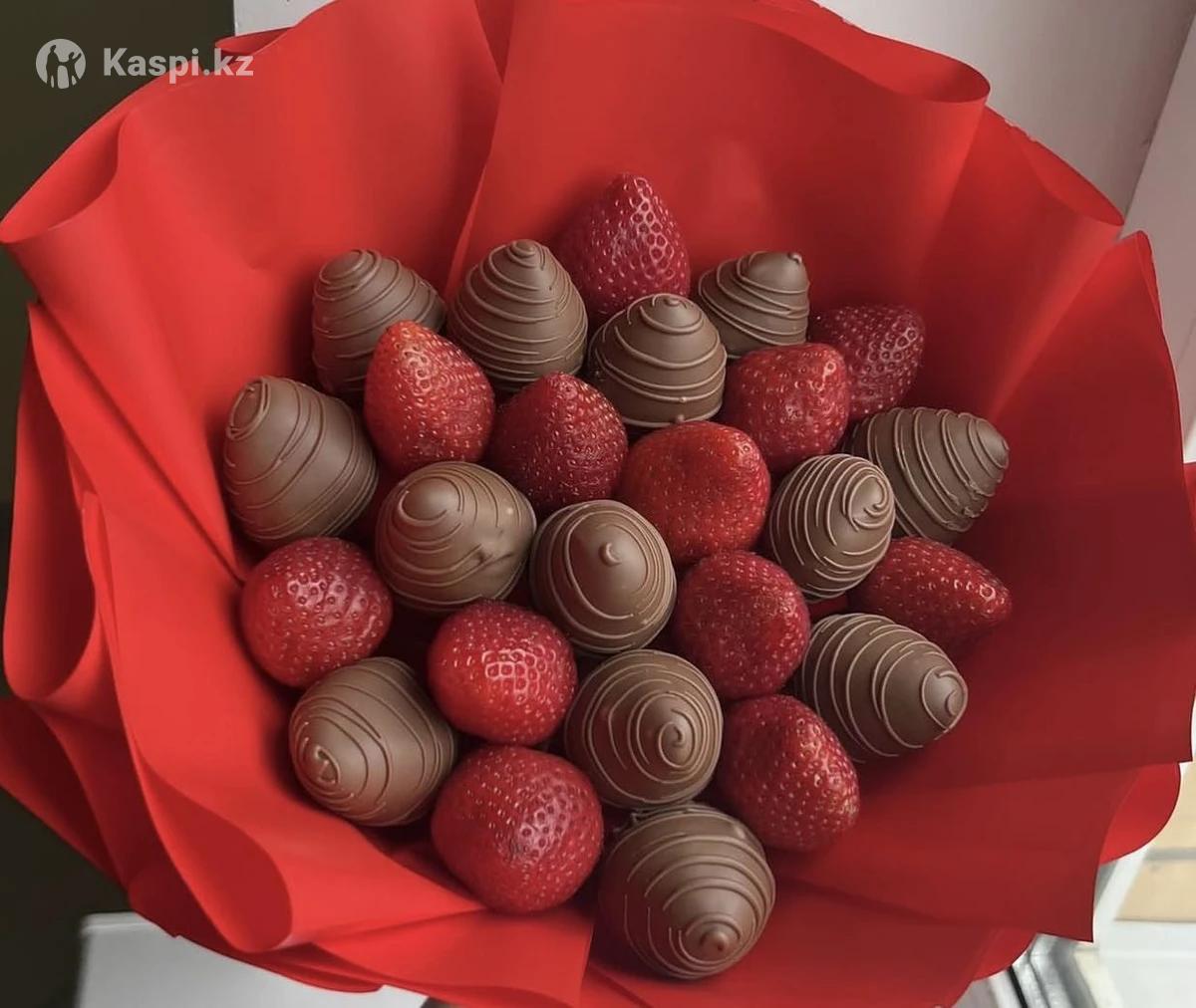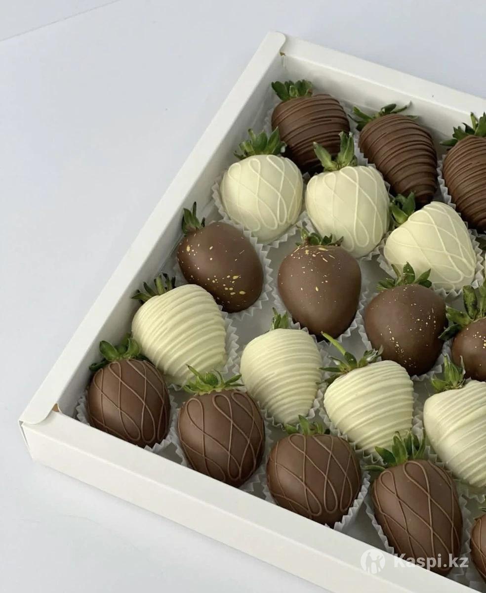 Клубника в шоколаде, оформление в подарок турецким шоколадом 540тг, Бельгийским шоколадом 730тг Callebaut