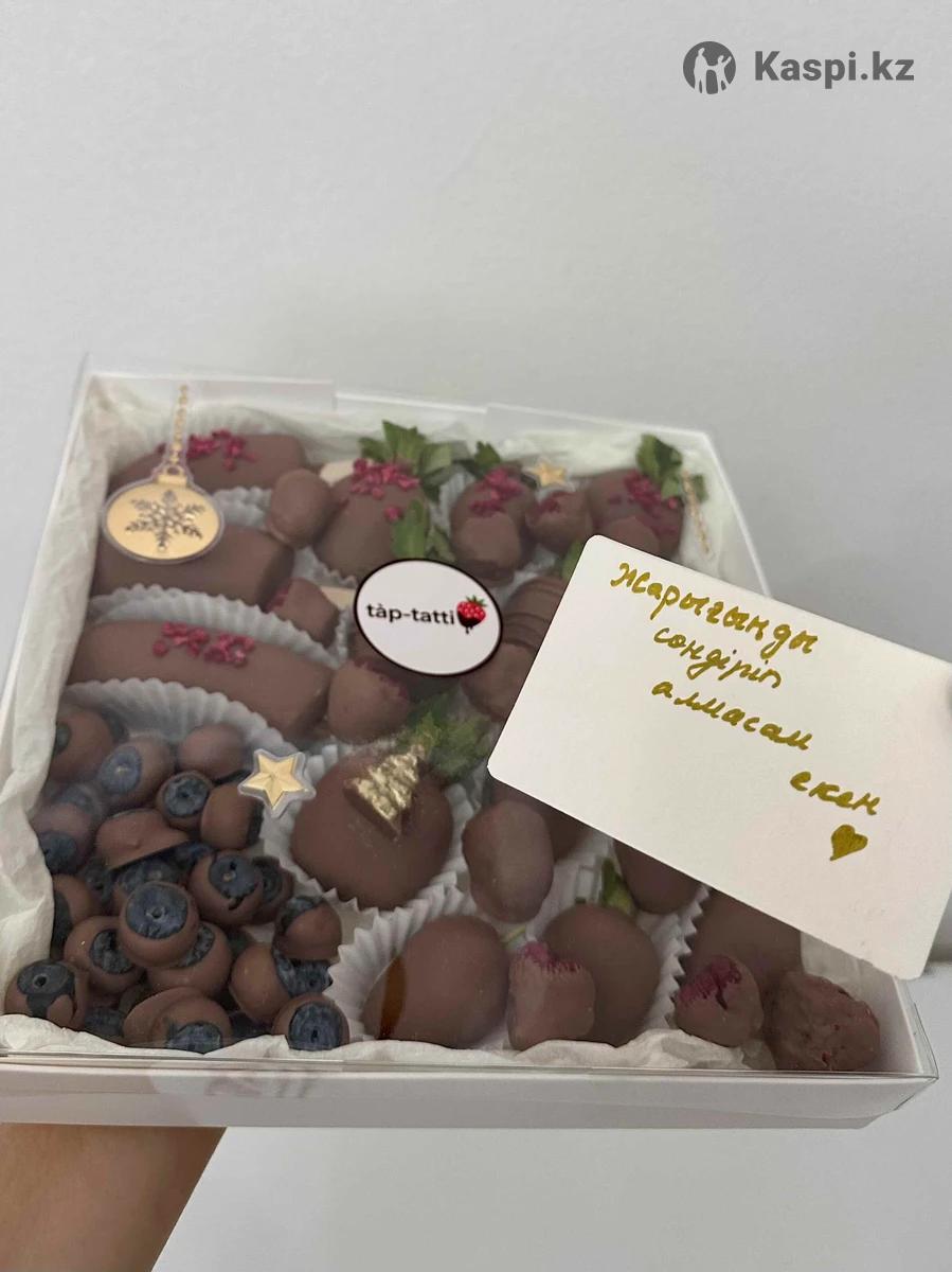 Клубника, голубика, банан, малина, гранат, финики в шоколаде