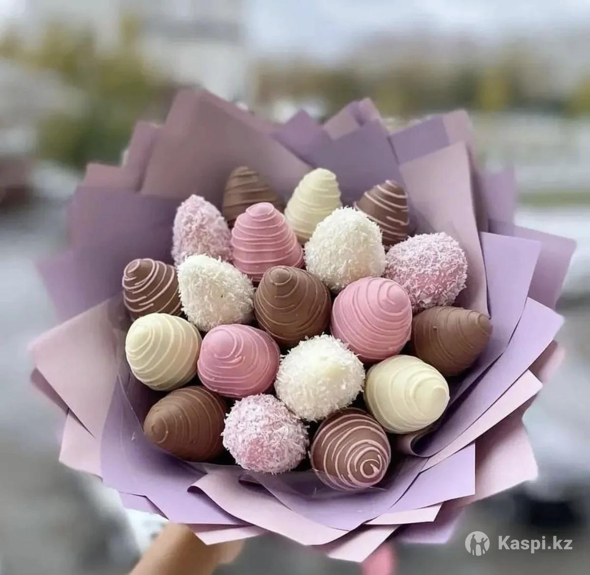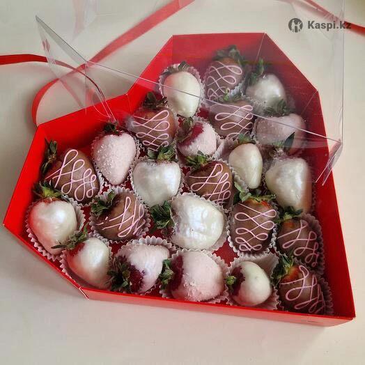 Жаңа піскен, шырынды клубника сапалы бельгиялық шоколадқа батырылып дайындалады. Әр дана мұқият безендіріліп, әдемі қаптамаға салынады. Тәтті де нәзік дәм — сыйлыққа да, өзіңізді еркелетуге де мінсіз таңдау 🤍