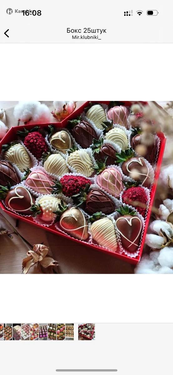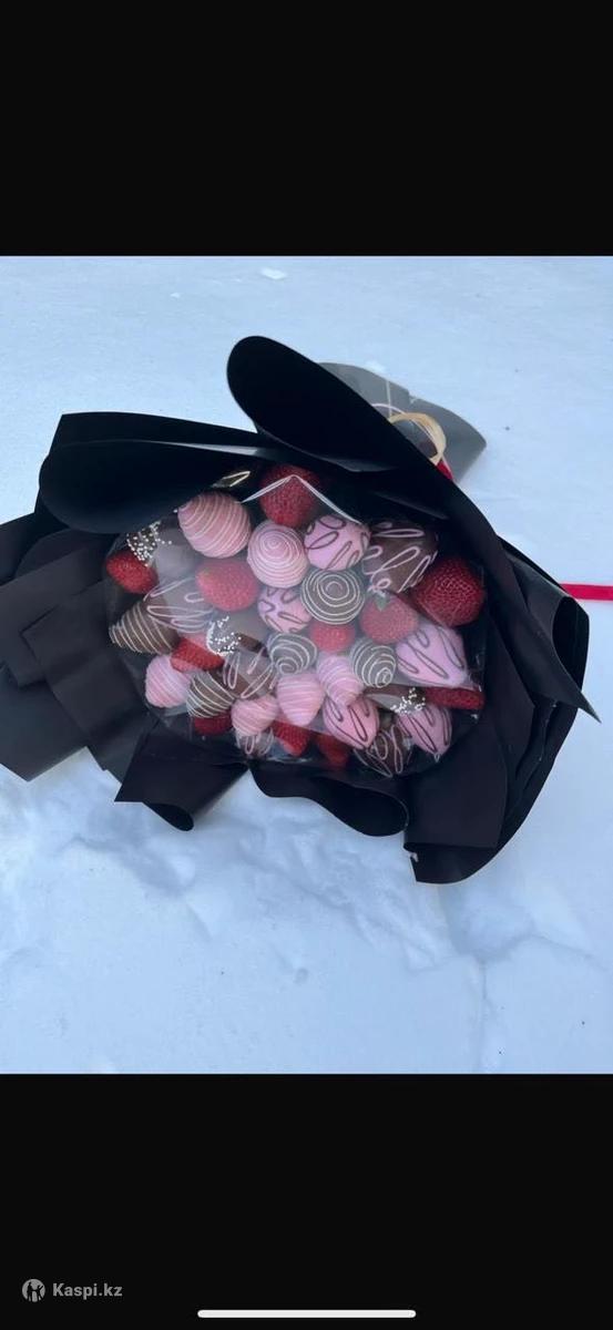 Свежая отборная клубника. Натуральный (бельгийский) шоколад. Красивое оформление. Цены от 4500 тенге. Есть доставка. По желанию можно сделать Банан в шоколаде