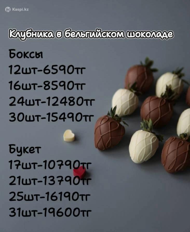 Клубника в бельгийском шоколаде Боксы 12шт-6590тг 16шт-8590тг 24шт-12480тг 30шт-15490тг Букет 17шт-10790тг 21шт-13790тг 25шт-16190тг 31шт-19600тг Звоните по телефону