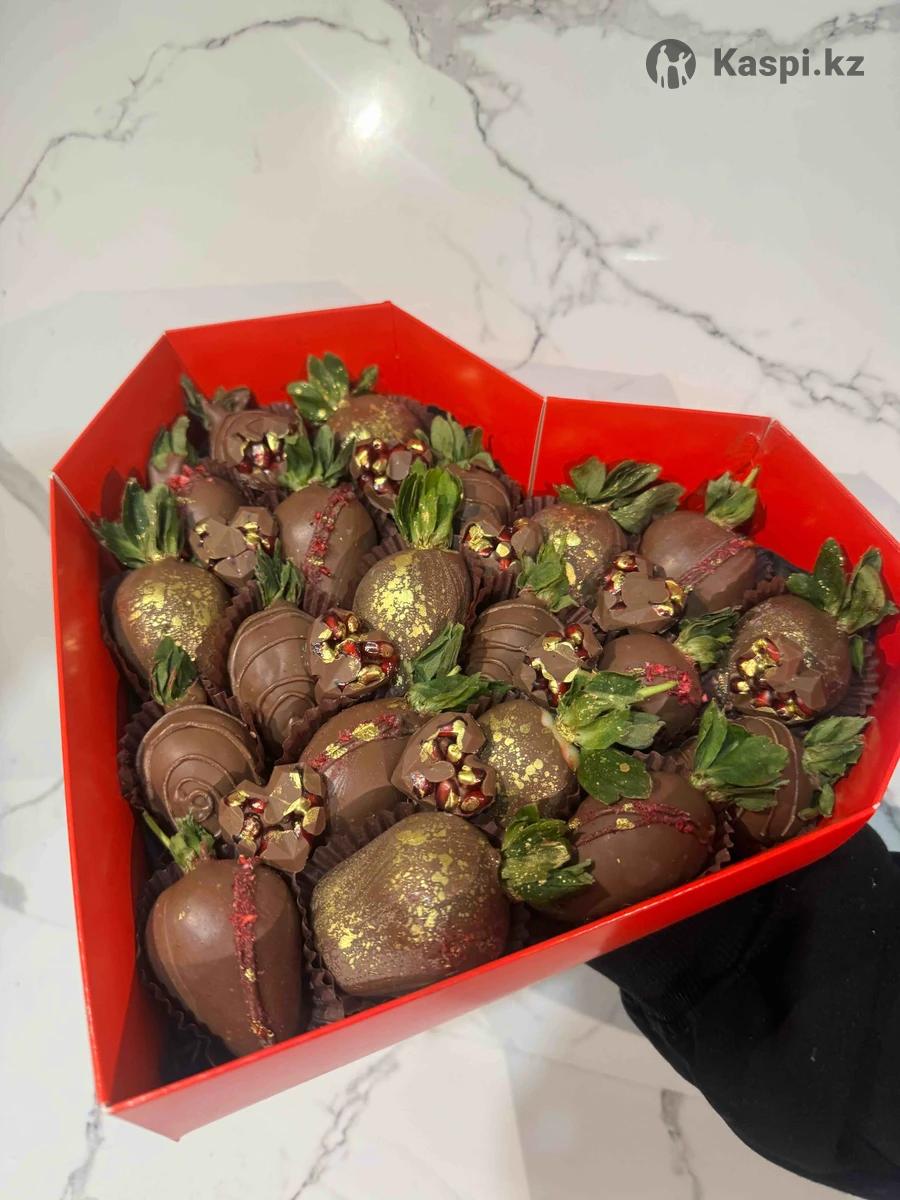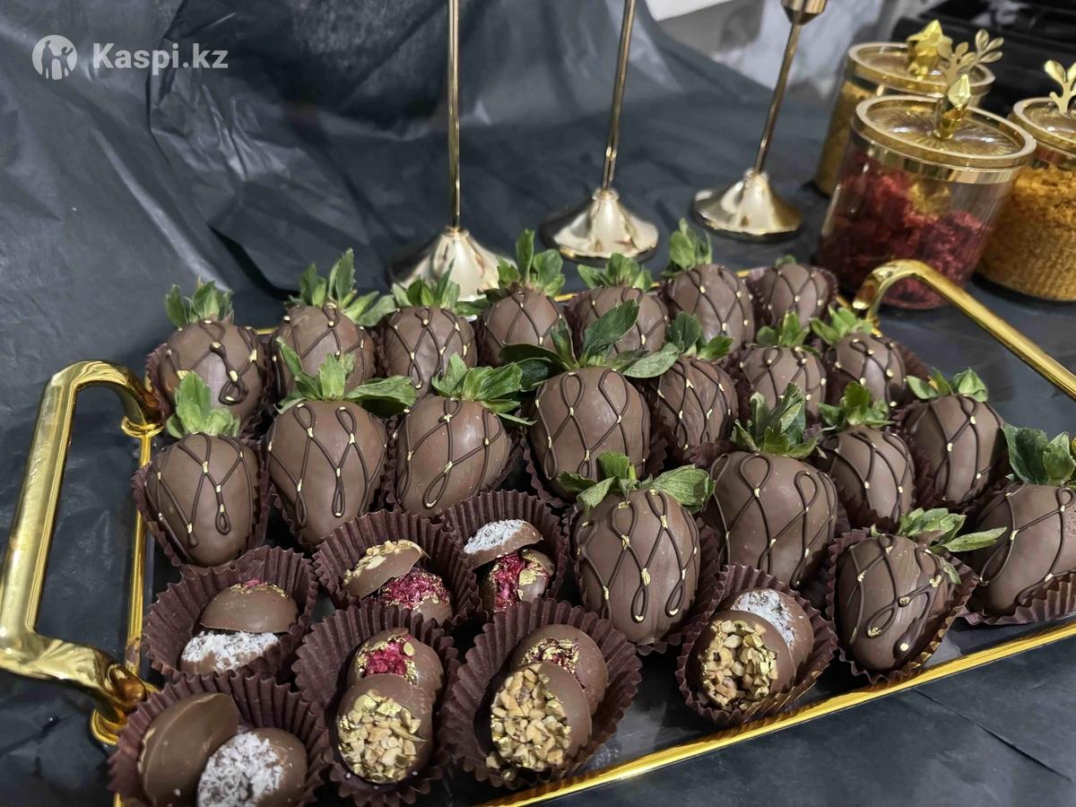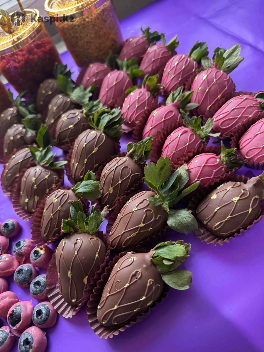 Клубника в шоколаде, 470 тг штук Банан , гранат и голубика