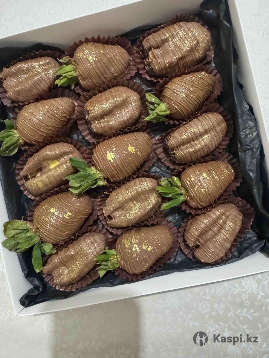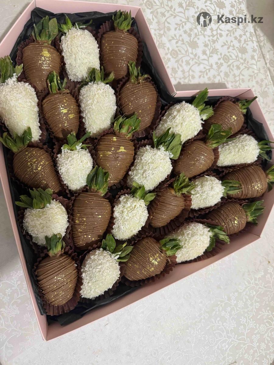 Клубника в шоколаде, 470 тг штук Банан , гранат и голубика