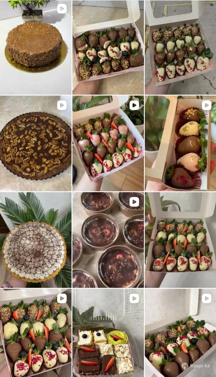 Принимаем заказы: клубники в шоколаде, трайфлы, торты, пироги и т. д. Все заказы делаются свежие, натуральные, с любовью. С качественными продуктами и бельгийскими шоколадками. Можно отправить с яндекс доставкой, самовывоз. Отправка с мкр Курсай. А также есть КАСПИ РЕД, РАССРОЧКА. INSTAGRAM, TIK TOK: . Там можете посмотреть, выбрать и заказать.