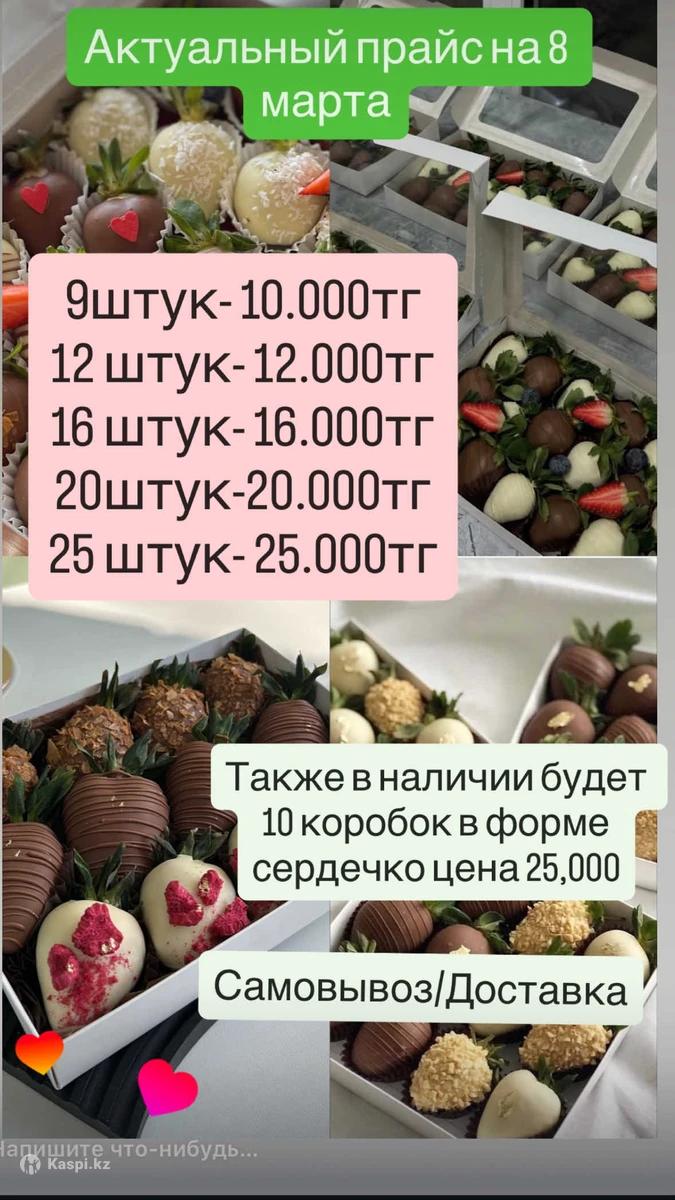 Клубника в шоколаде будут в наличии 8 марта пишите в для брони Уалиханова 32а доставка и самовывоз