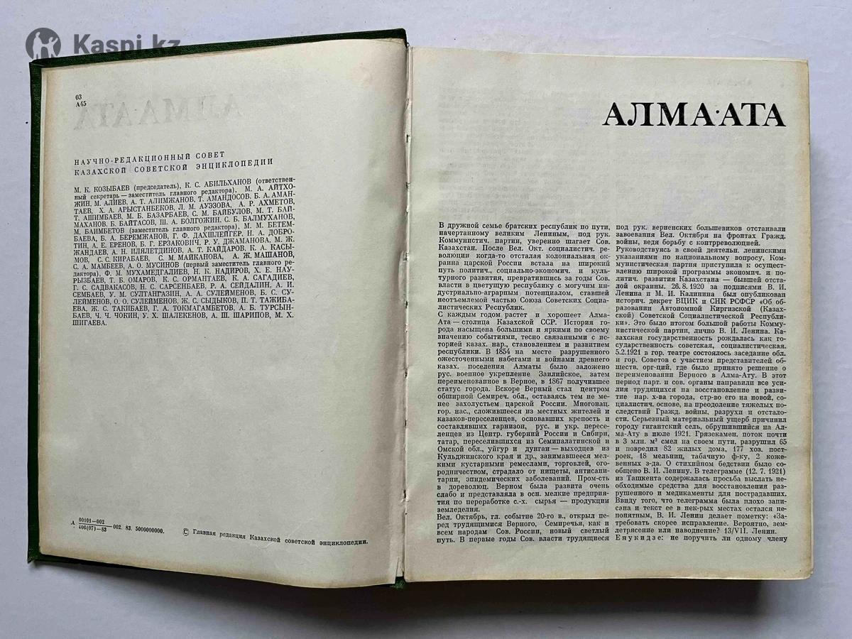 «Алма-Ата. Энциклопедия» Издательство «Казахская Советская энциклопедия». 1983 г. Это справочное издание содержит информацию об истории, культуре, экономике и географии города Алма-Ата (ныне Алматы) советского периода. Главным редактором энциклопедии являлся М. К. Козыбаев. Посмотрите мои другие объявления! Имеется обширная библиотека.