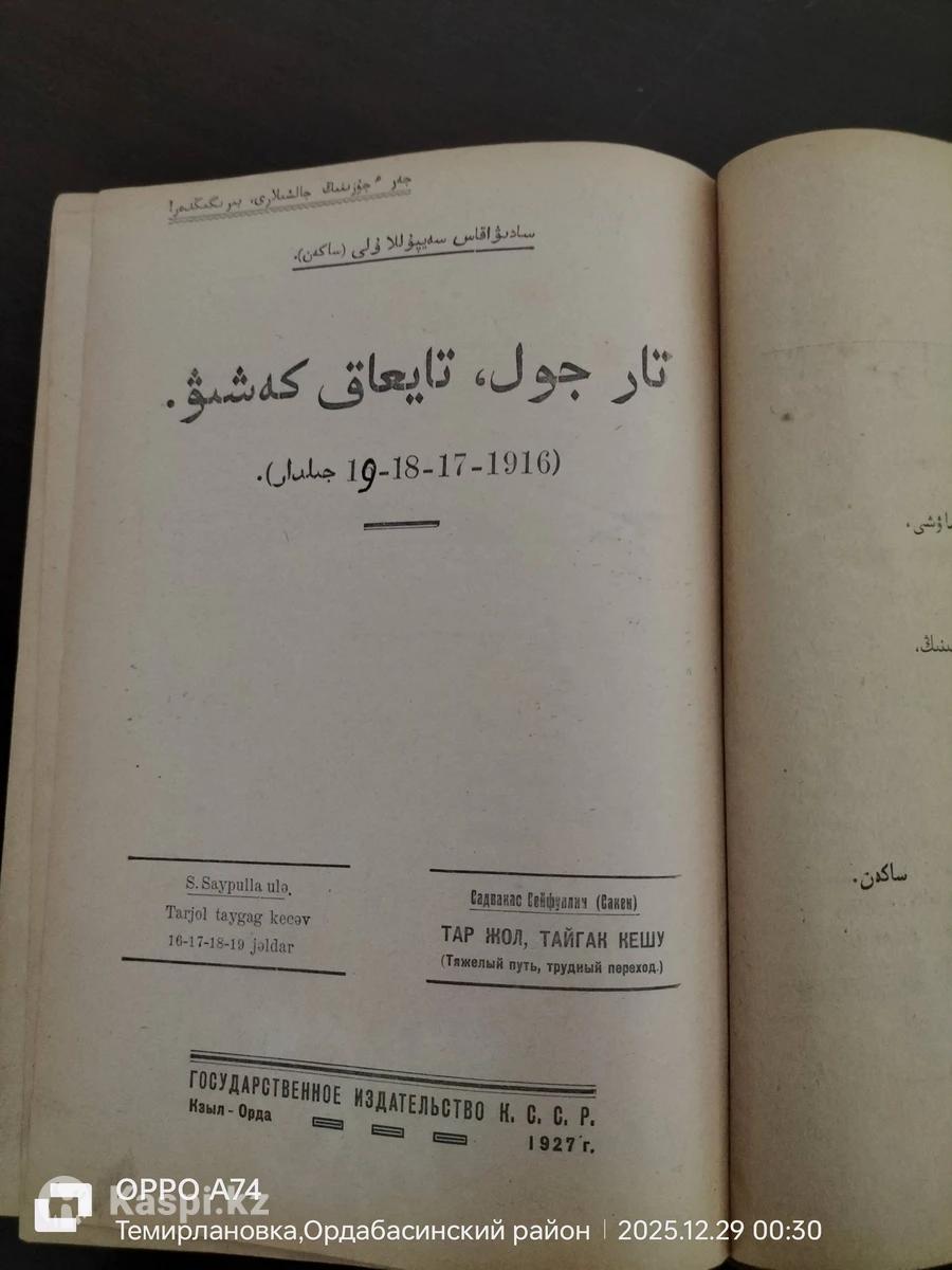 Книга Сәкен Сейфуллина Тар жол, тайғақ кешу на арабском графике 1927 г/в. Осталась единицы.