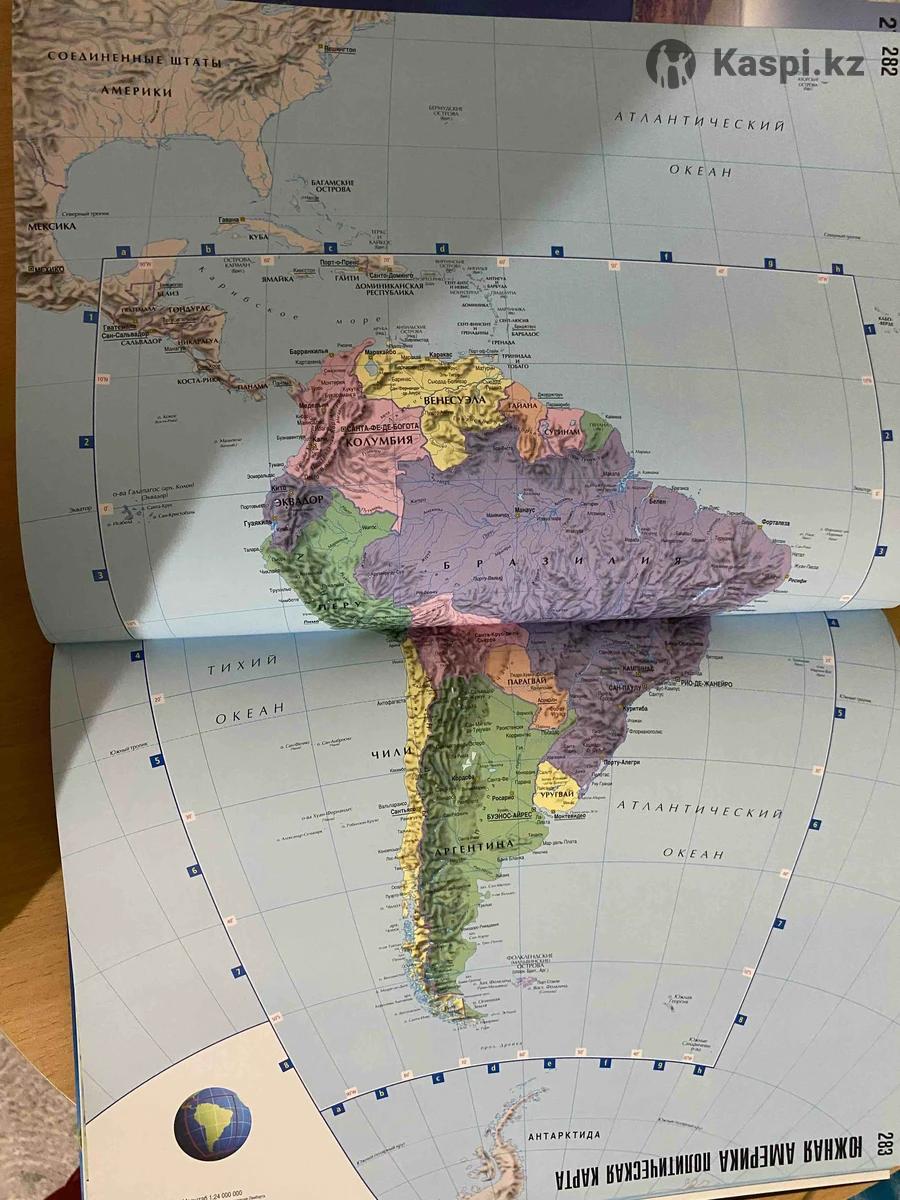 Большой Атлас Тип издания: Энциклопедический иллюстрированный атлас мира. Содержание: Содержит подробные современные карты, охватывающие все континенты. Особенности: Включает географическую информацию о рельефе, политическом устройстве государств и административно-территориальном делении. По тетради видно на сколько он большой атлас