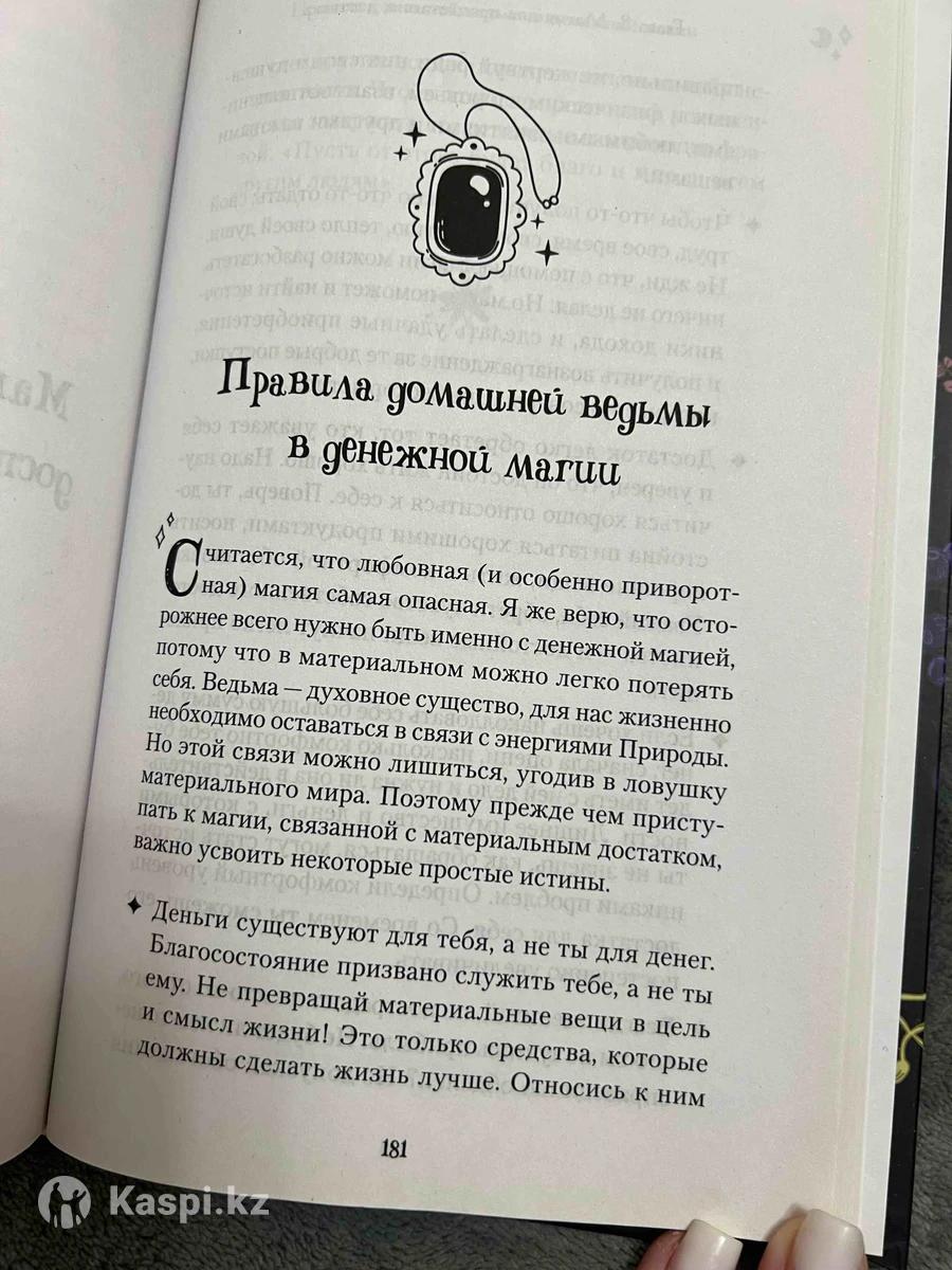 Книга-путеводитель в мир магии, которой вы так долго ждали. Ее автор — домашняя ведьма со стажем — познакомит вас с основами своего колдовства и раскроет несколько важных секретов. Первый и самый главный из них: стать ведьмой может каждая! Сила и природная мудрость уже струится внутри вас. Откройте книгу и узнайте, как направить этот мощный поток энергии на исполнение желаний, привлечение любви, изобилия и гармонии в вашу жизнь. В конце книги вас ждет колдовской гримуар, который содержит проверенные автором обряды и заклинания для юных ведьмочек и опытных ведьм. «Запомни, сестра. Домашняя магия — это вовсе не про скучные котелки, бабушкины заговоры и нашептывания перед сном. Быть домашней ведьмой очень уютно, приятно, а временами — безумно весело». Книга абсолютно новая,продаю из-за того что случайно заказала 2 экземпляра.Цена новой 5000 тг