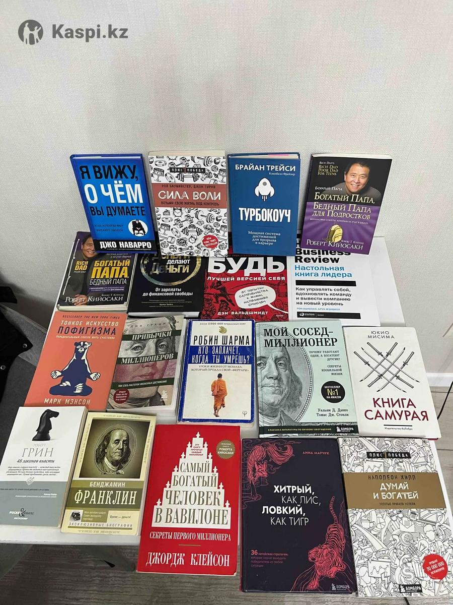 Продам книги по саморазвитию, финансам и психологии состояние хорошая но не новая Цена от 3000 Можно купить по отдельности или комплектом (комплектом сделаю скидку). Пишите в сообщения, договоримся 1. Я вижу о чём вы думаете — Джо Наварро 2.Сила воли — Рой Баумайстер, Джон Тирни 3.Турбокоуч — Брайан Трейси 4.Богатый папа, бедный папа для подростков — Роберт Кийосаки 5.Богатый папа, бедный папа — Роберт Кийосаки 6.Деньги делают деньги 7.Будь лучшей версией себя — Дэн Вальдшмидт Review: Настольная книга лидера 9.Тонкое искусство пофигизма — Марк Мэнсон 10.Привычки миллионеров 11.Кто заплачет, когда ты умрёшь? — Робин Шарма 12.Мой сосед – миллионер — Томас Стэнли 13.Книга самурая — Юкио Мисима 14.48 законов власти — Роберт Грин 15.Бенджамин Франклин: Биография 16.Самый богатый человек в Вавилоне — Джордж Клейсон 17.Хитрый, как лис, ловкий, как тигр — Анна Марчук 18.Думай и богатей — Наполеон Хилл