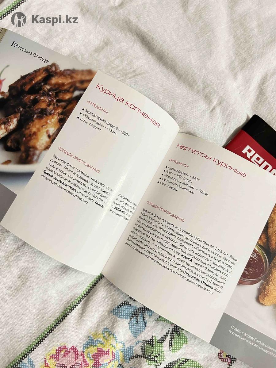 В наличии есть три книги рецепты две для мультиварке один Redmond другая Tefal и еще одна Redmond гриль контактный. Каждую книжку рецептов по 1000 тенге все подробности по телефону