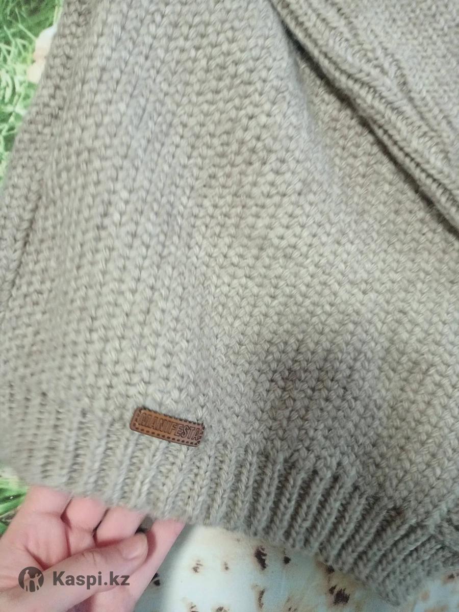 Кофта женская, размер 46-48. Подойдет на холодное лето или осень. Очень приятная и нежная вязка. Покупала на wildberries за 21.000 тенге. В идеальном состоянии.