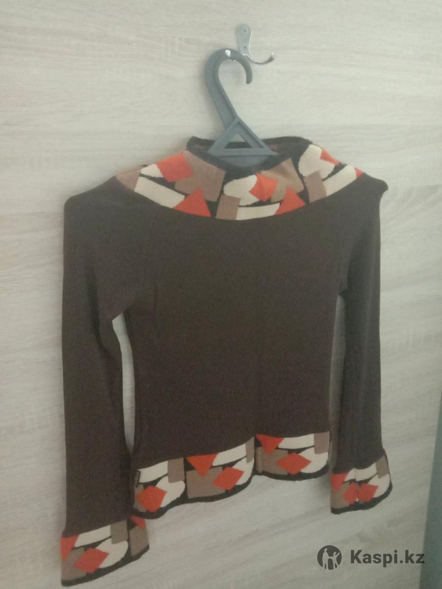 Кофта женская кофейного цвета с разноцветной вставкой. Почти новая, одевали несколько раз. Размер 42-44.