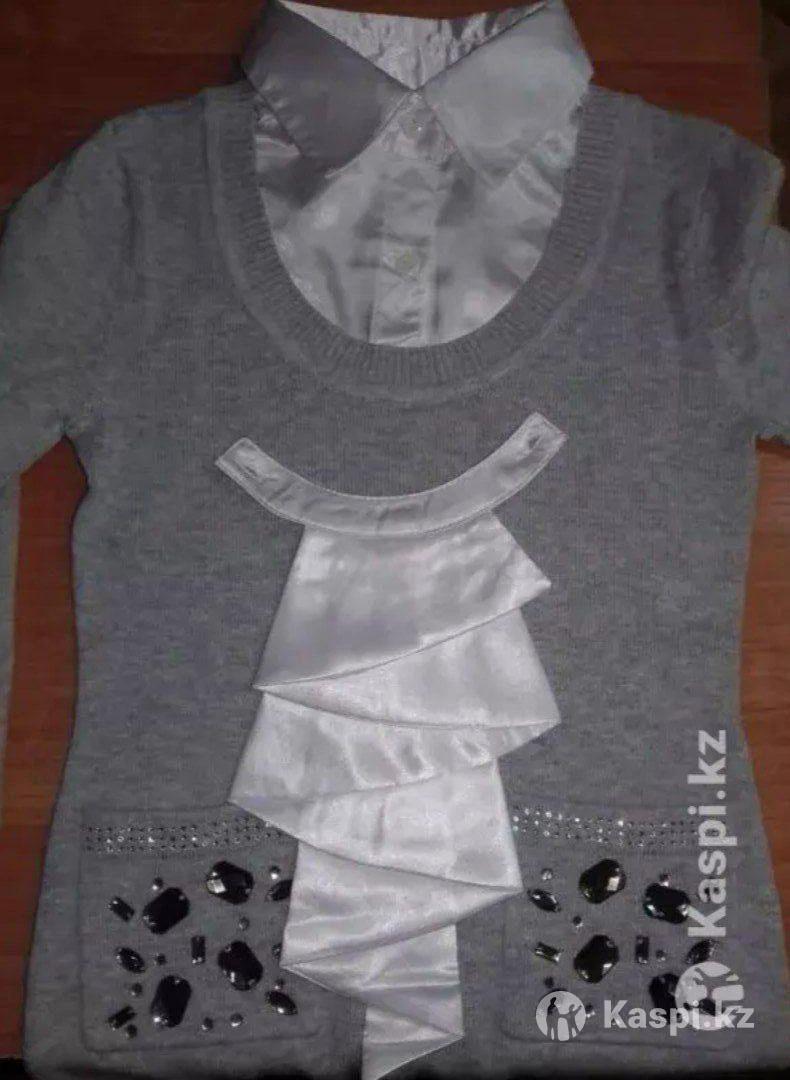Кофта школьная на девочку, Deloras, 130 рост,. Обманка, серого цвета, со съемным украшением (жабо) на шее. 93% хлопка 7% спандекс