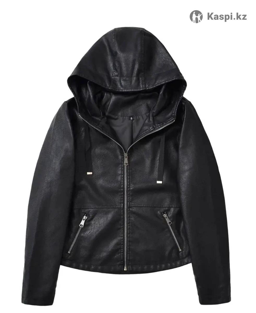 Продается женская кожаная куртка с капюшоном, свободная демисезонная куртка из искусственной потертой кожи. Размер L (44-46)