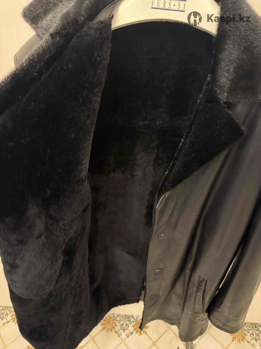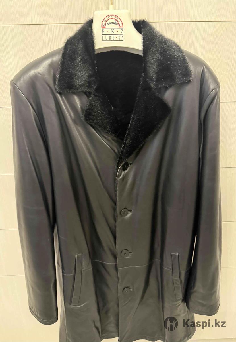 Кожаное пальто мужское с воротником из нерпы в отличном состоянии.