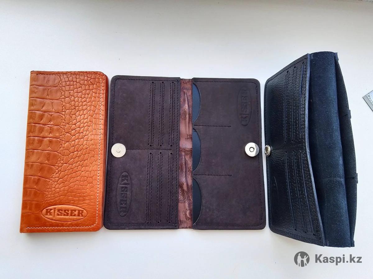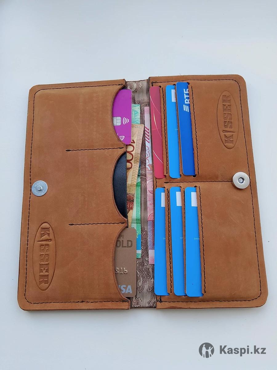 Кошельки из натуральной кожи ручной работы. На 9 карт-отсеков Два отдела для наличных Есть изделия с подкладом, а также без подклада, тут на любителя. Застежки разные есть магнит, есть кнопка. Не фабричные Кожа разных цветов и отделок. Информацию о товаре можно узнать, позвонив по телефону указанному в карточке товара. Можем доставить до вашего региона через Т.К СДЭК
